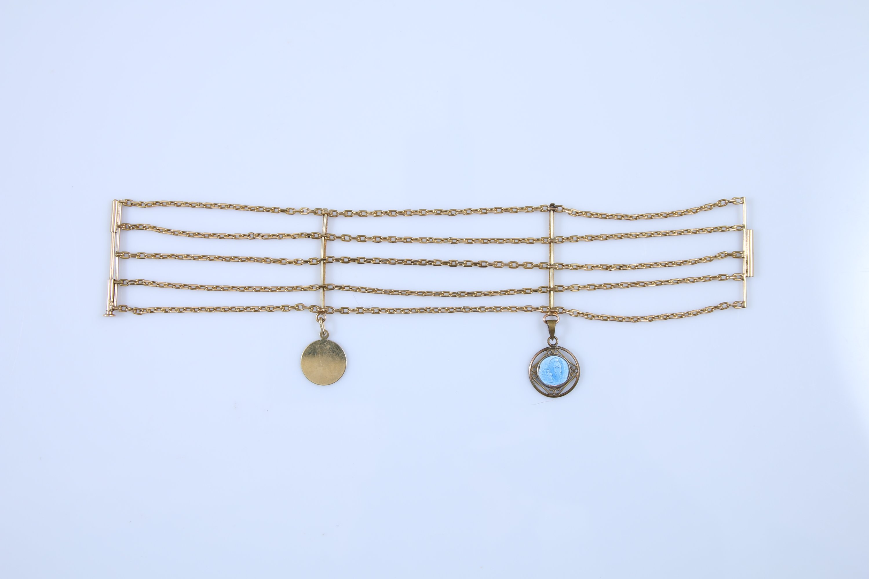 Or jaune 750 millièmes et une médaille en métal et émail.