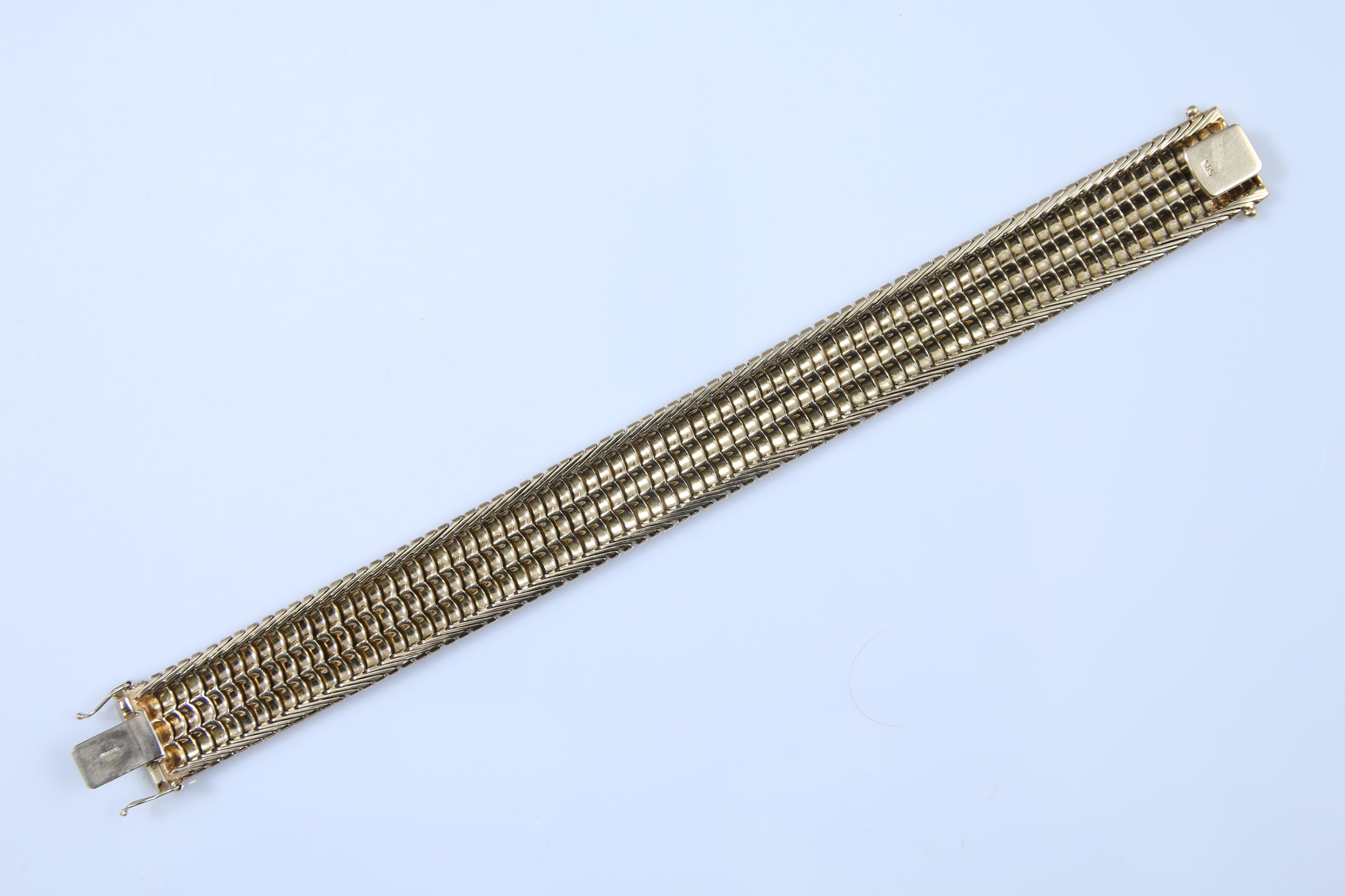A mailles articulées palmier et triple rang de motifs stylisés.