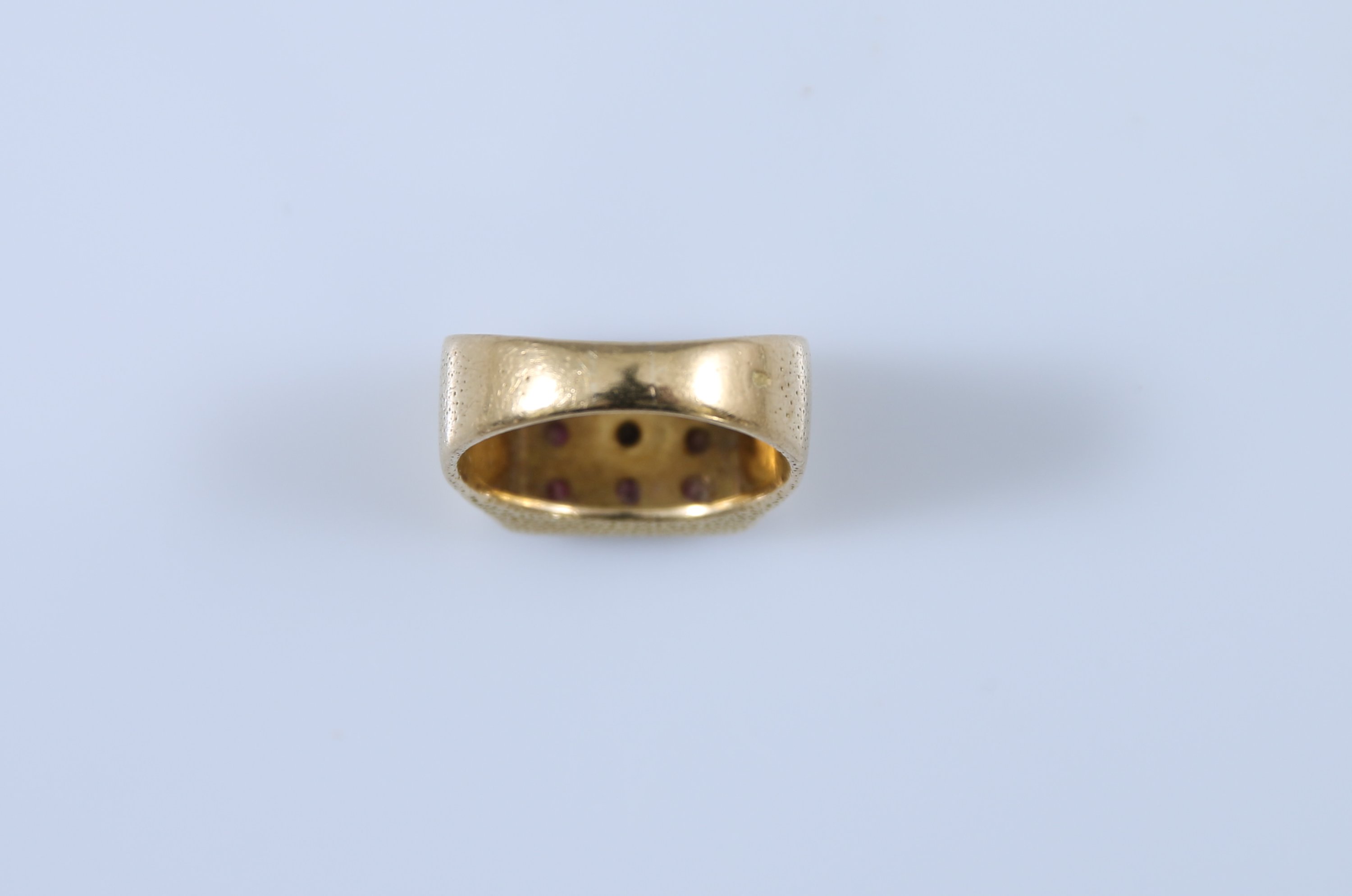 Or jaune 750 millièmes sertie de neuf pierre rouge sur trois rangs.