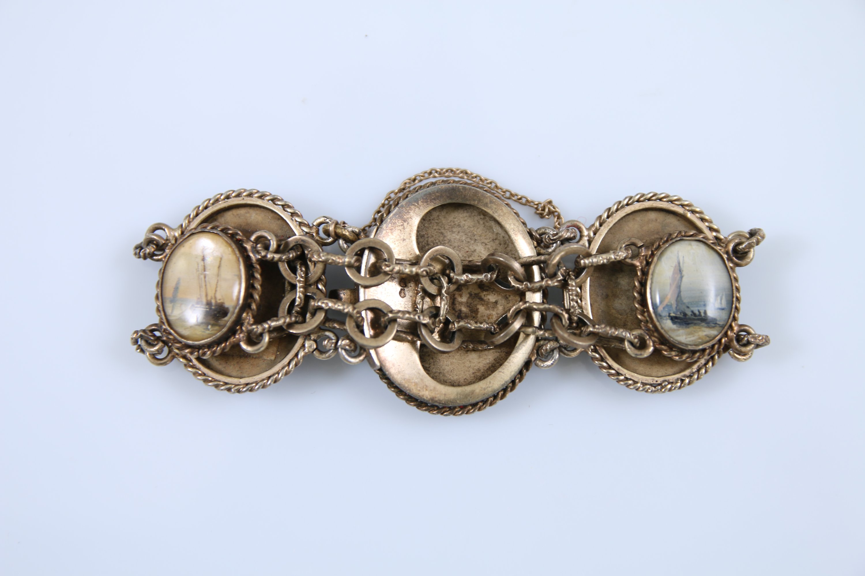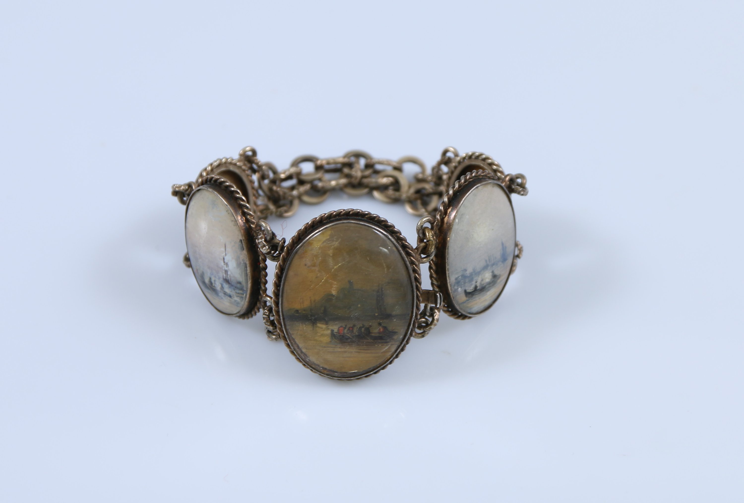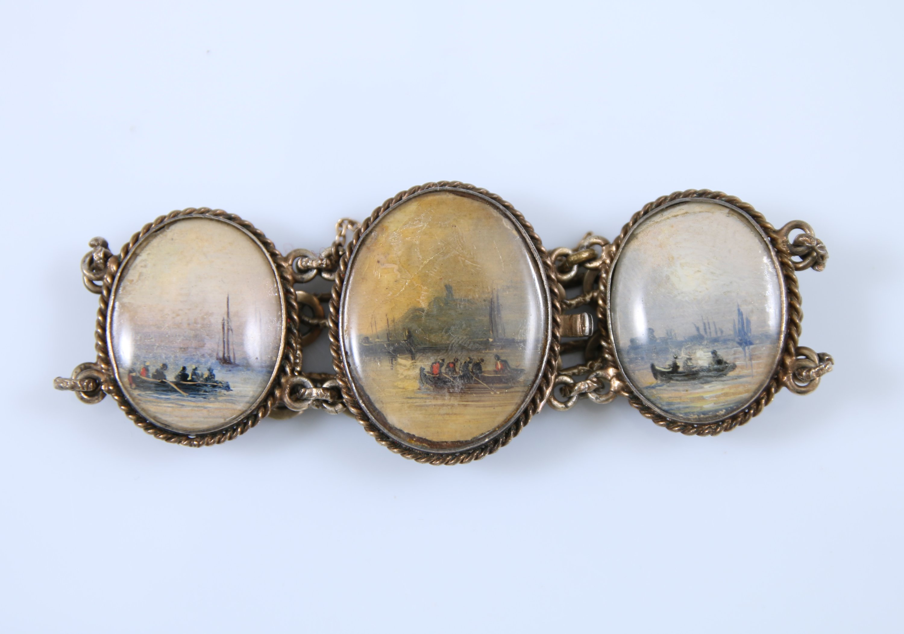 Il se compose de cinq médaillons à décor sous verre de miniatures aux marines.