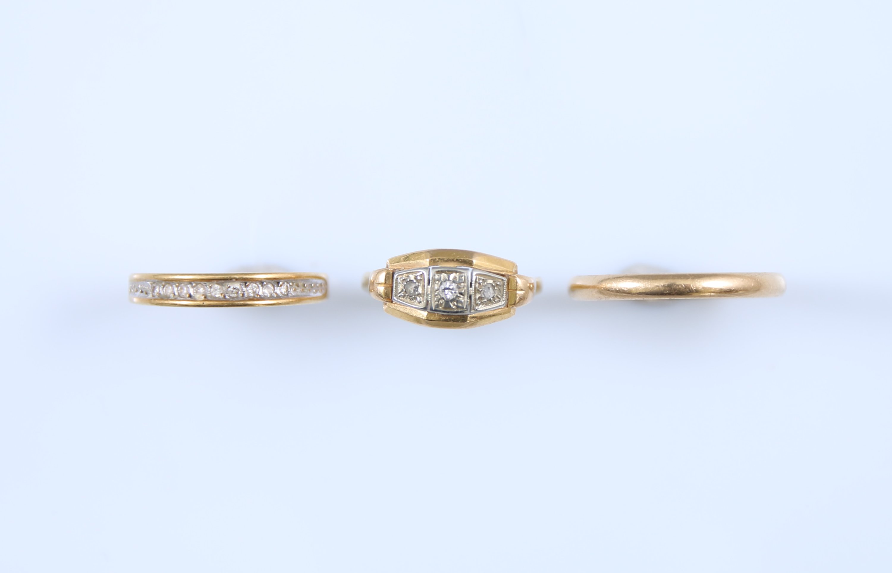 Or jaune 750 millièmes, les bagues pavées de brillants.