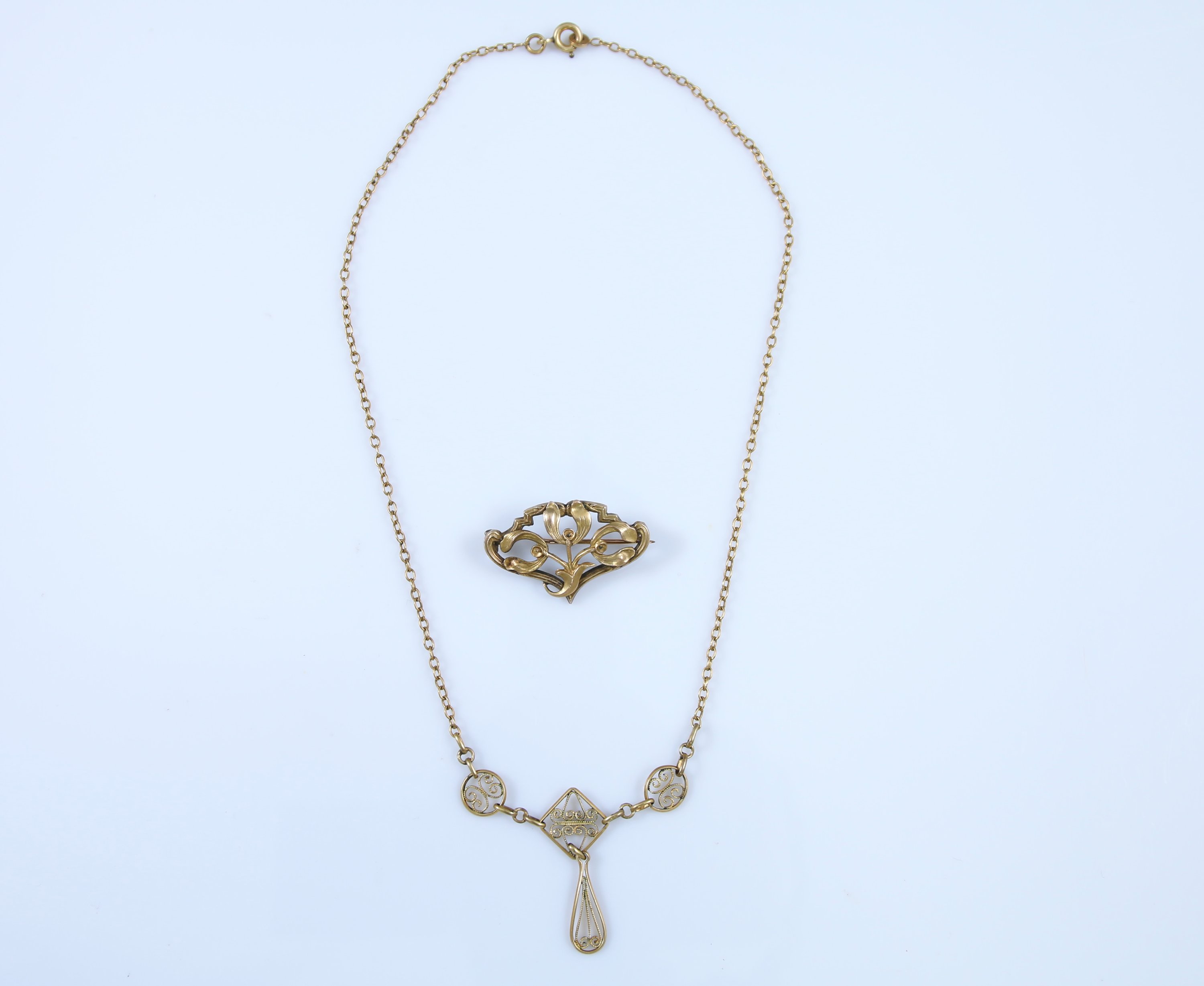 - un collier en or jaune 375 millièmes à décor de quatre motifs. Poids : 3,3 g.