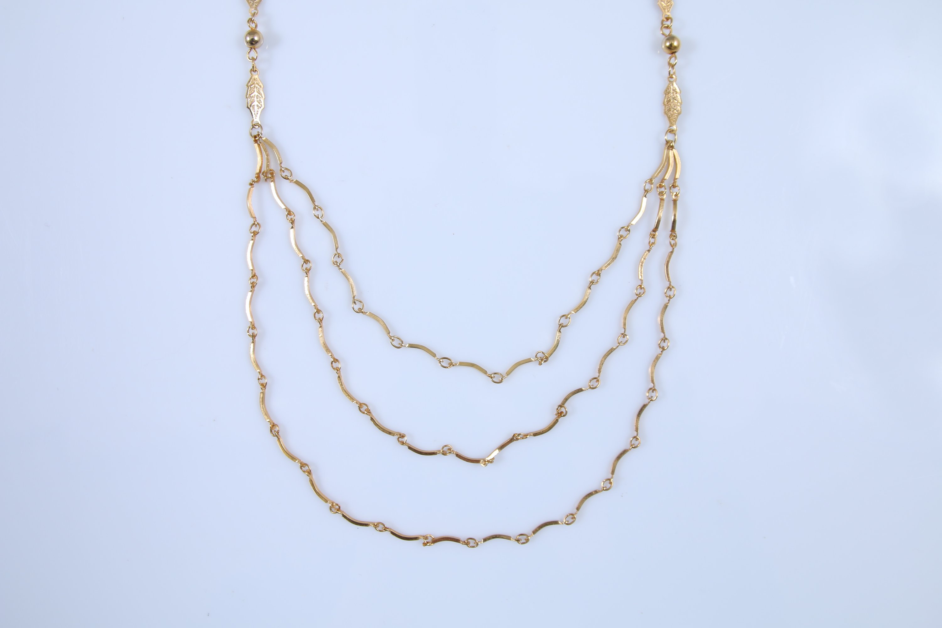 Or 375 millièmes à mailles de feuillages stylisés et perles simulées.