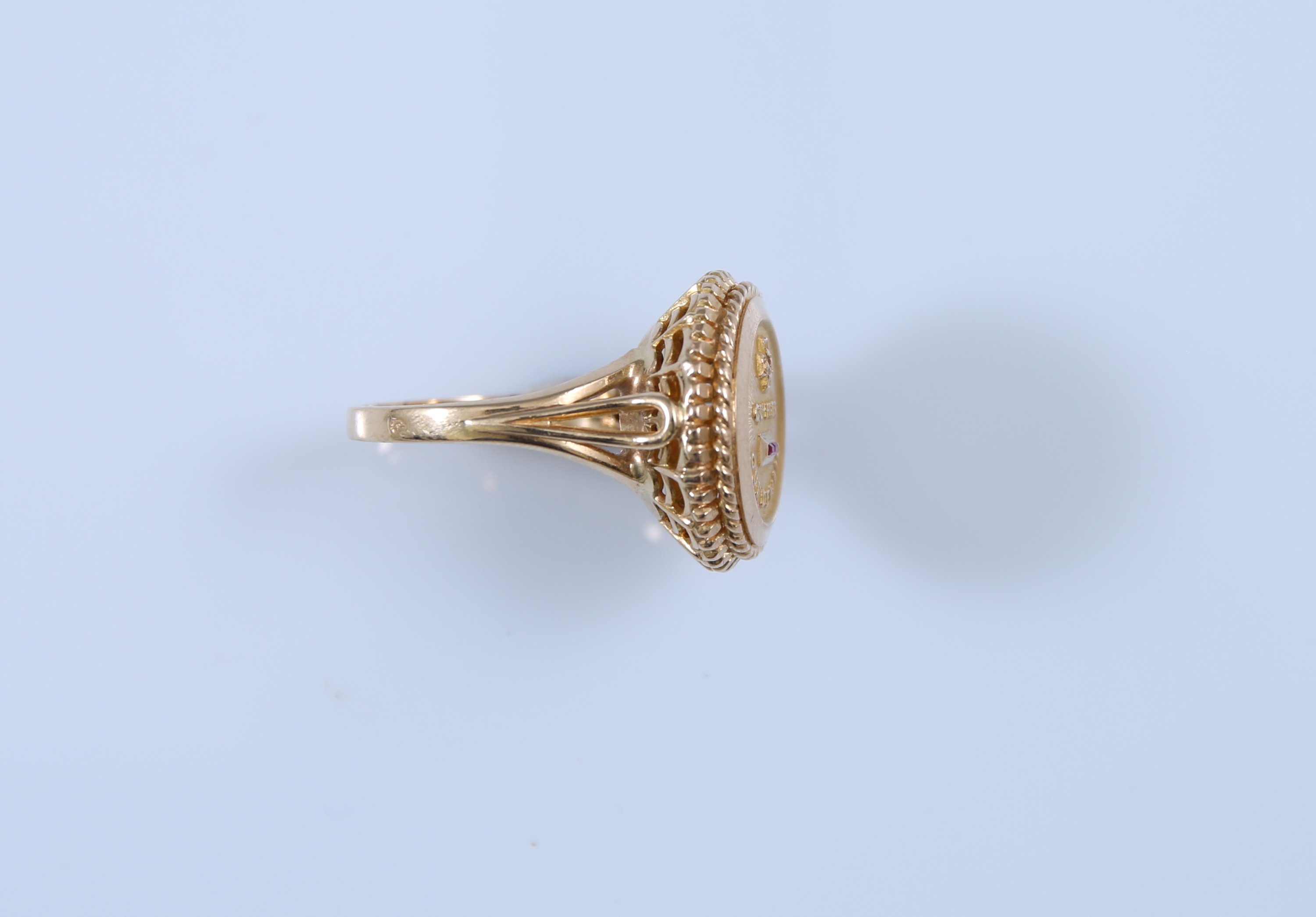 Sertie d'une pierre blanche et une pierre rose.