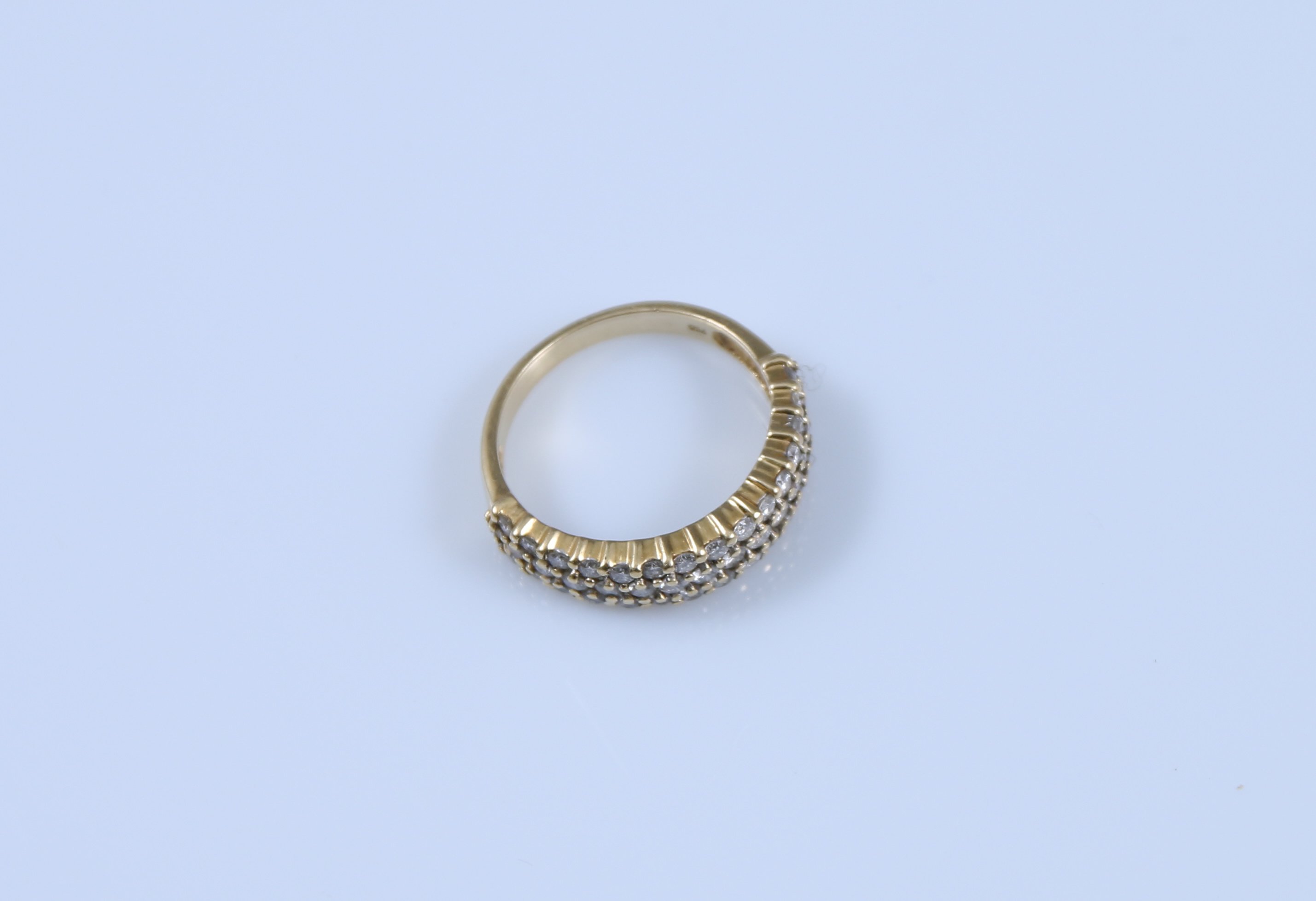 Or jaune 750 millièmes ornée au centre de trois lignes de diamants ronds de taille brillant.