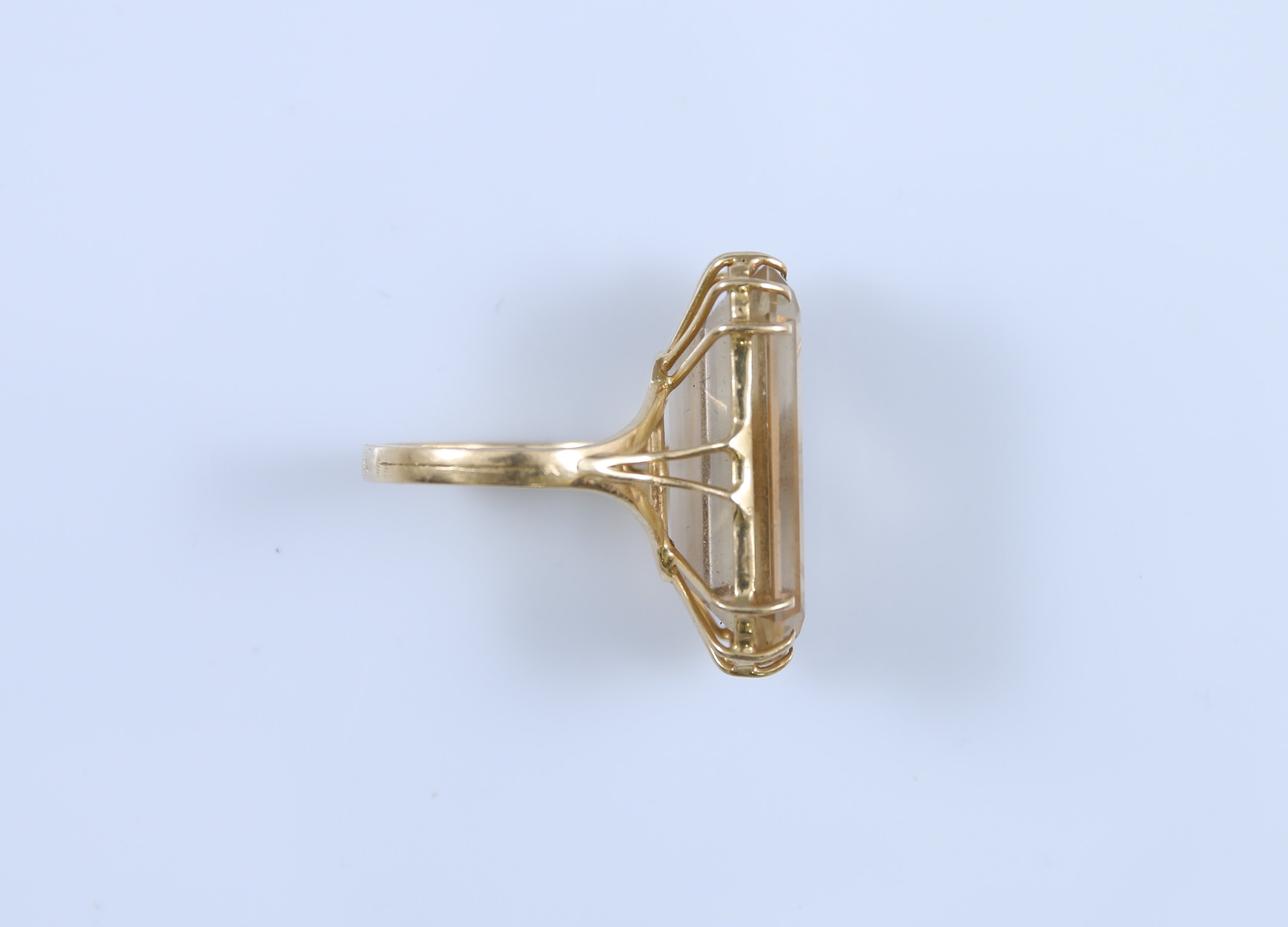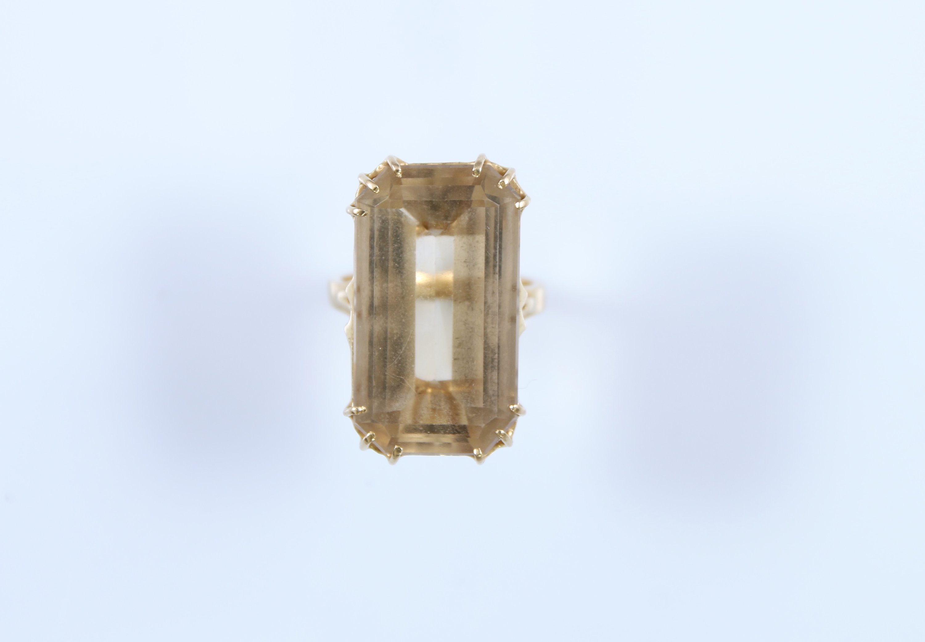 Or jaune 750 millièmes sertie d'un verre à l'imitation d'une citrine taillé en émeraude.