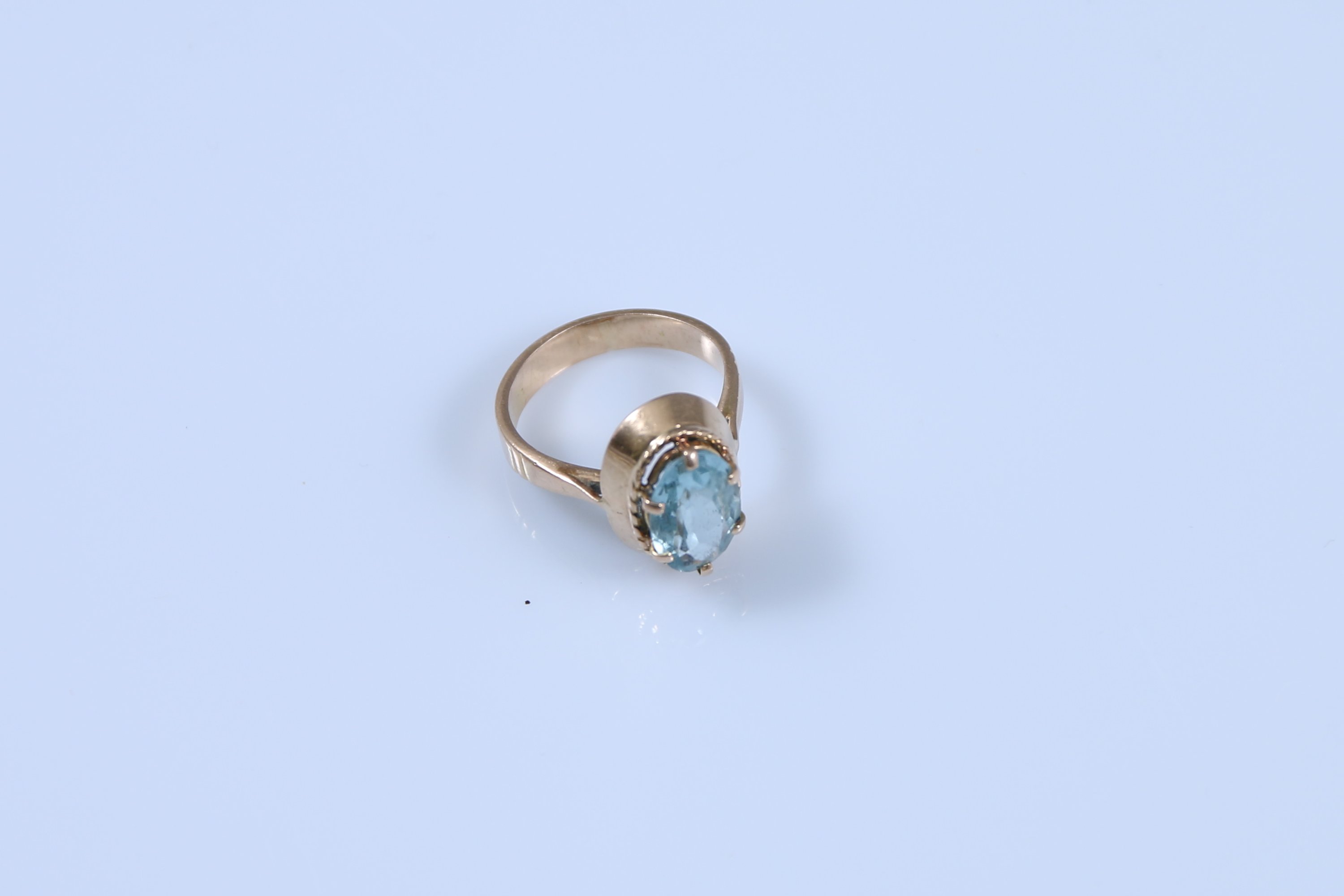 Or jaune 750 millièmes sertie d'une aigue-marine de forme ovale.