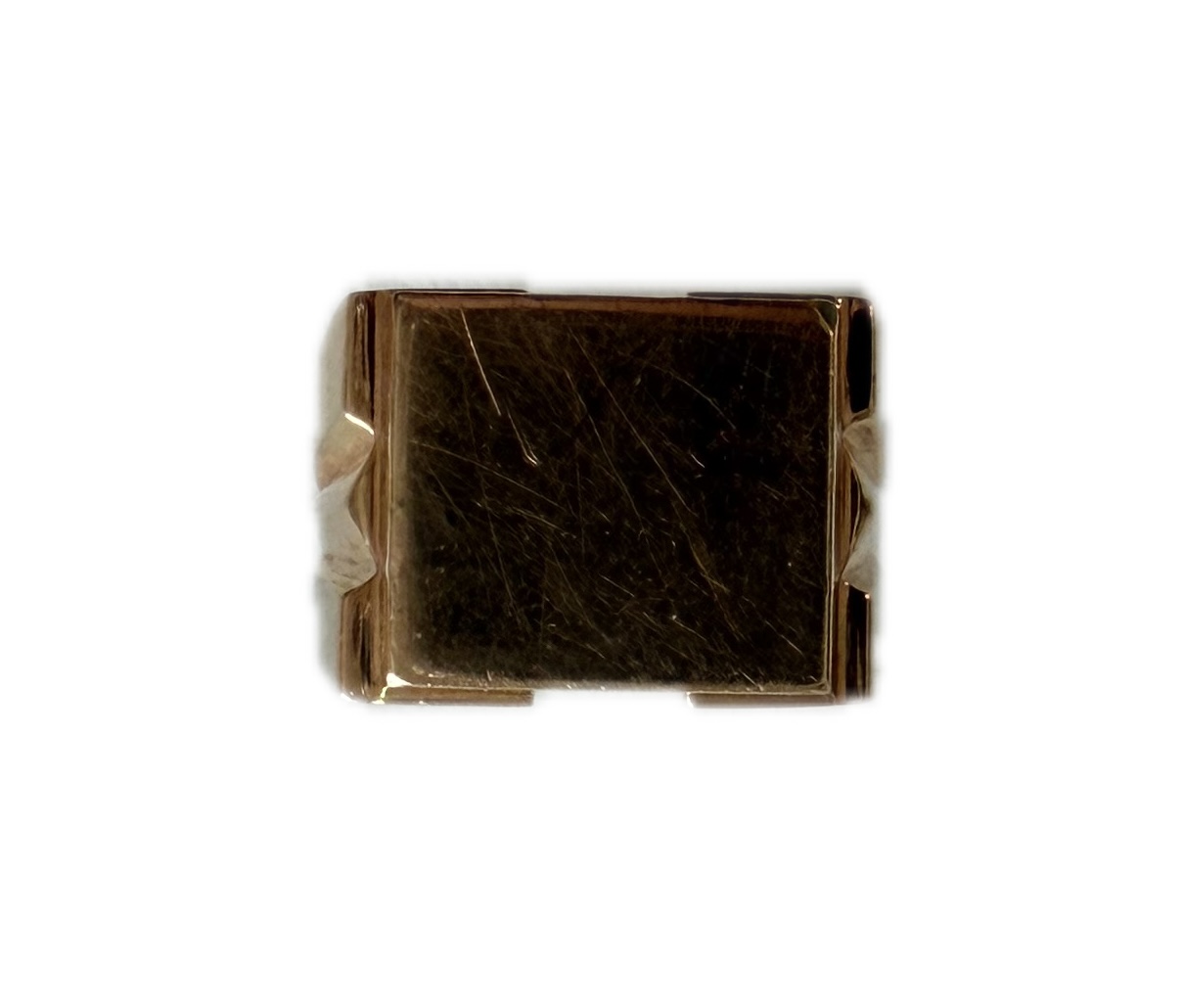 Or jaune 750 millièmes. Chaton rectangulaire vierge épaulé de formes géométrique.