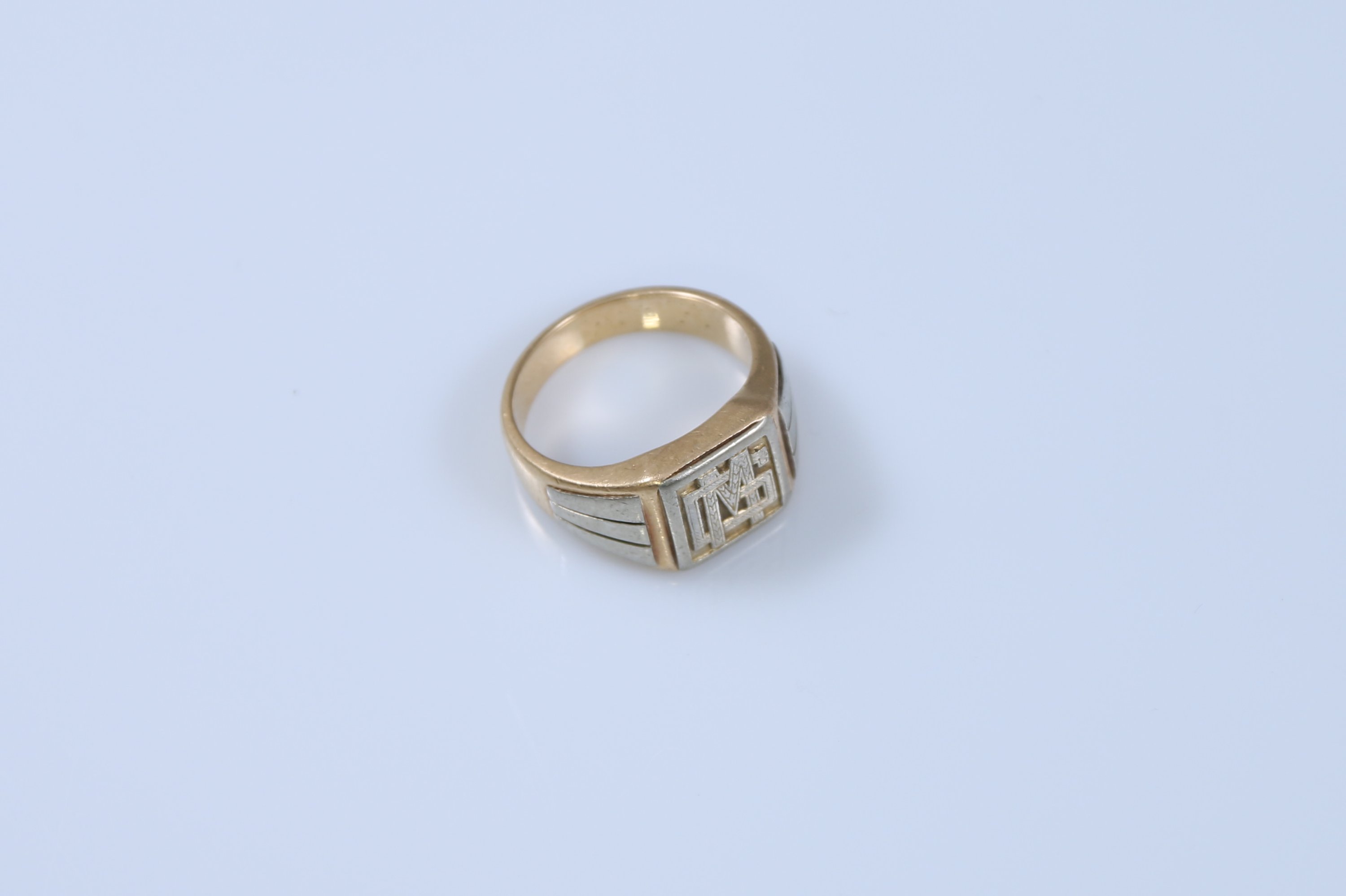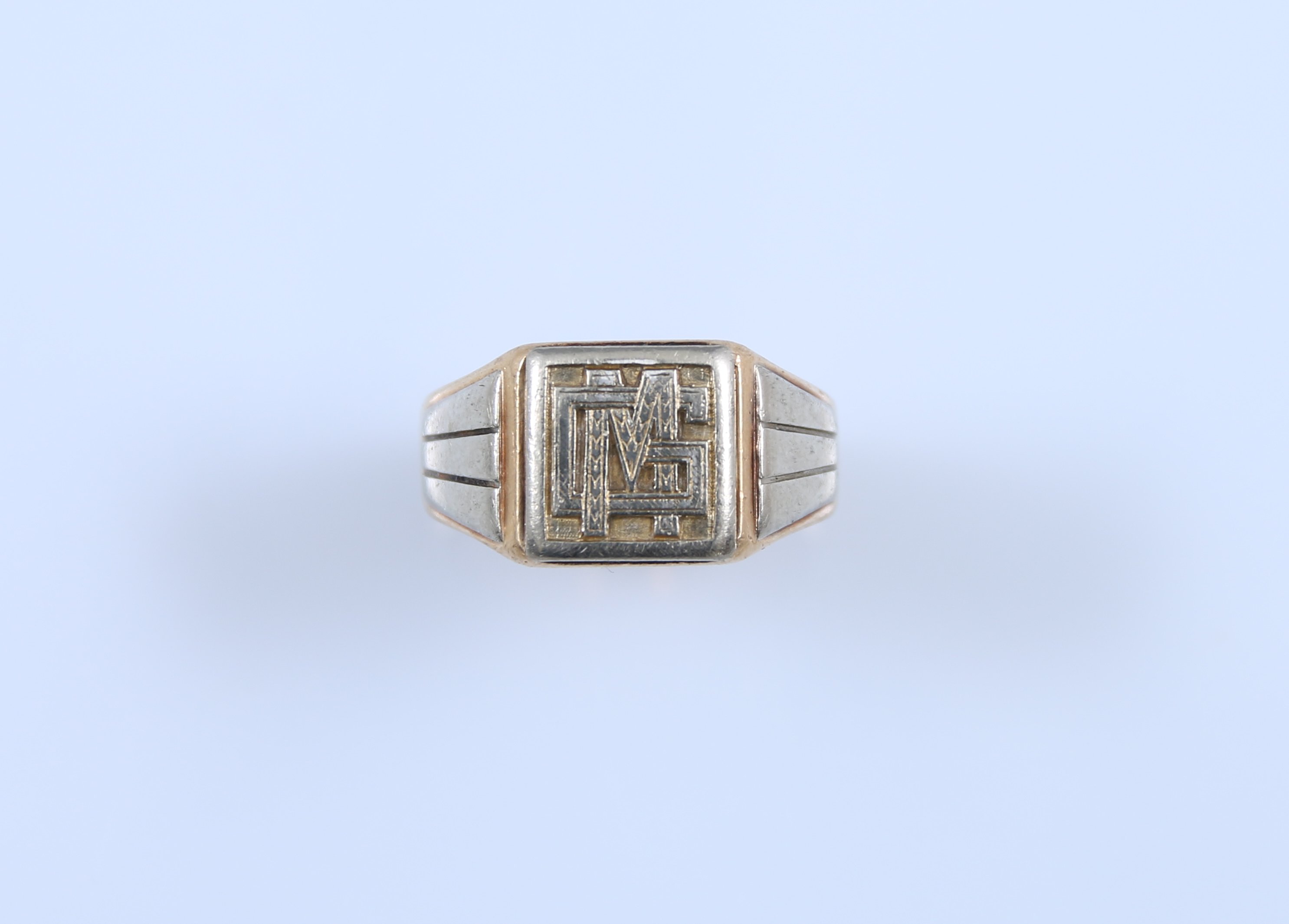 Or jaune et gris 750 millièmes au chaton monogrammé "MG".