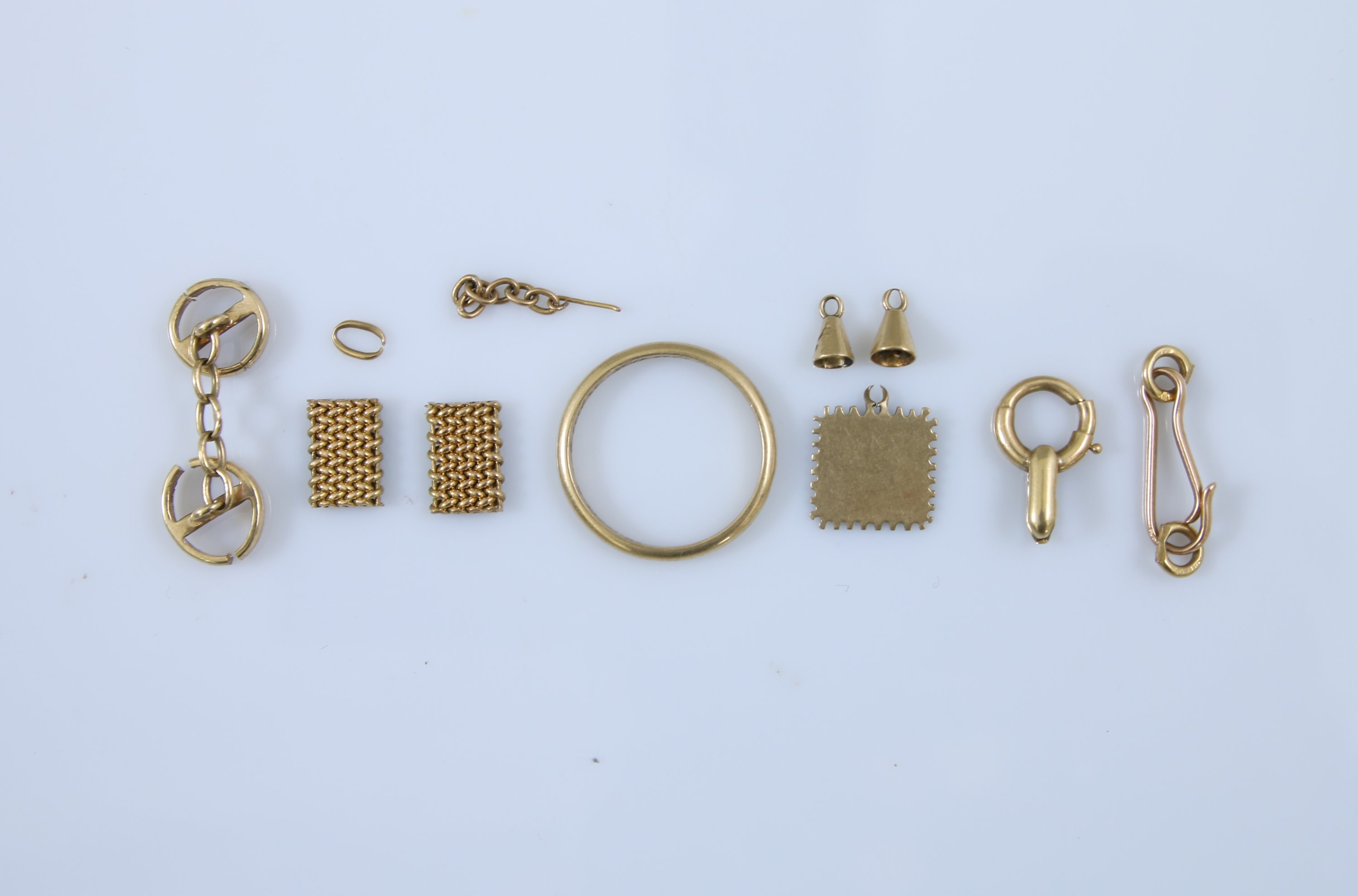 Or 750 millièmes, composé notamment : une alliance, un bouton de manchette (accidents), pendentif.