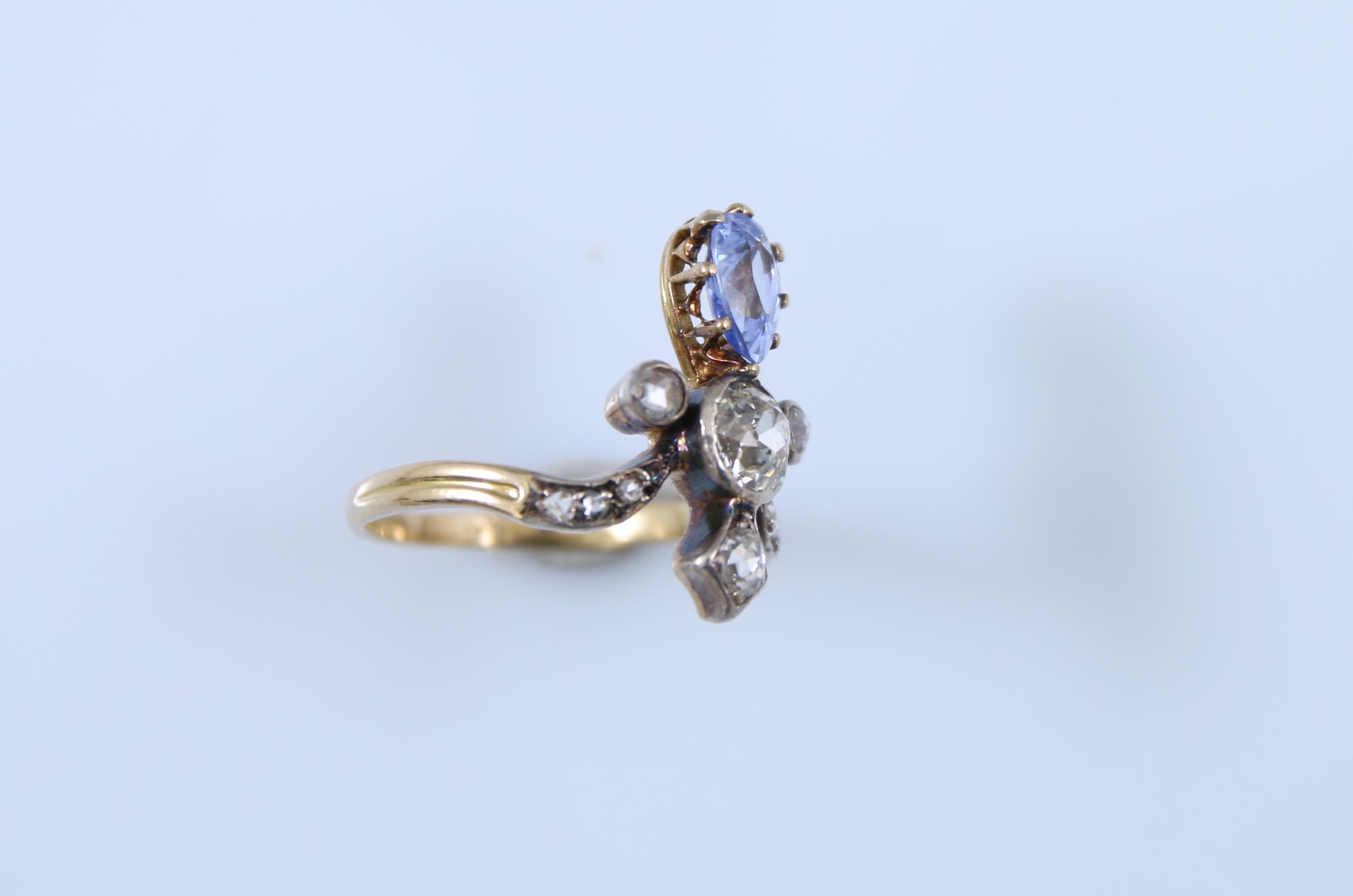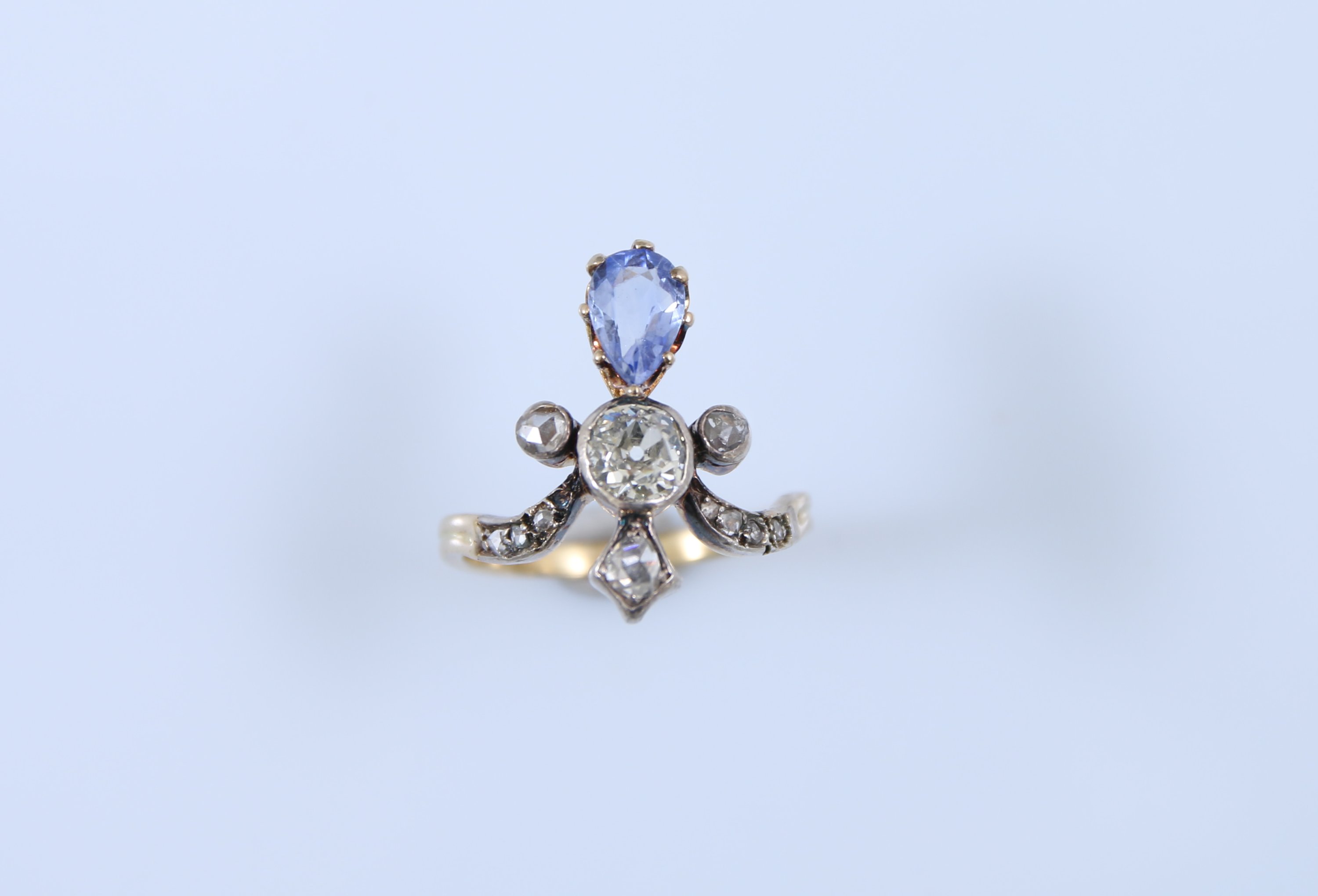 Orné de diamants de taille ancienne et pierre bleu : saphir ?