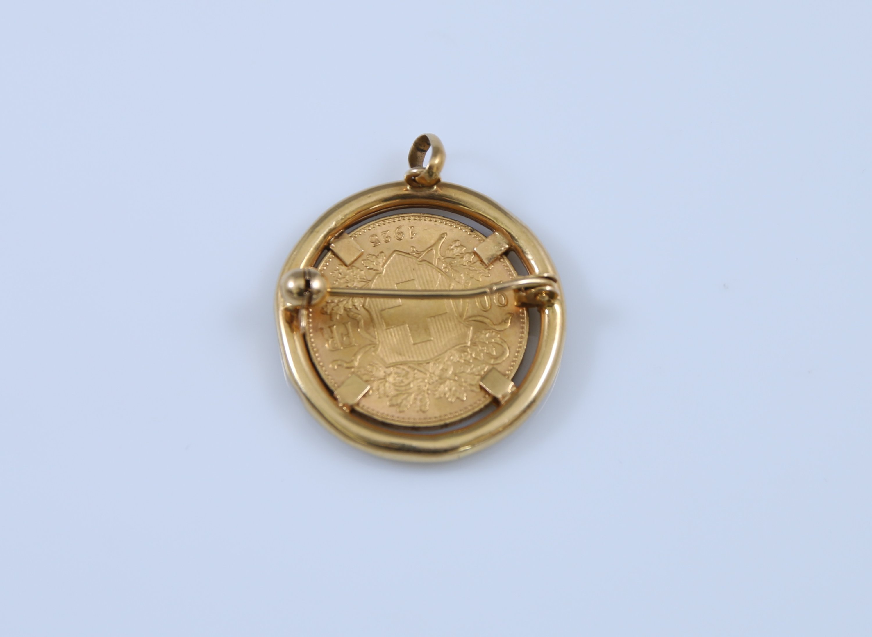 Or jaune 750 millièmes orné d'une pièce de 20 francs suisse or 1925 frappée à Berne.