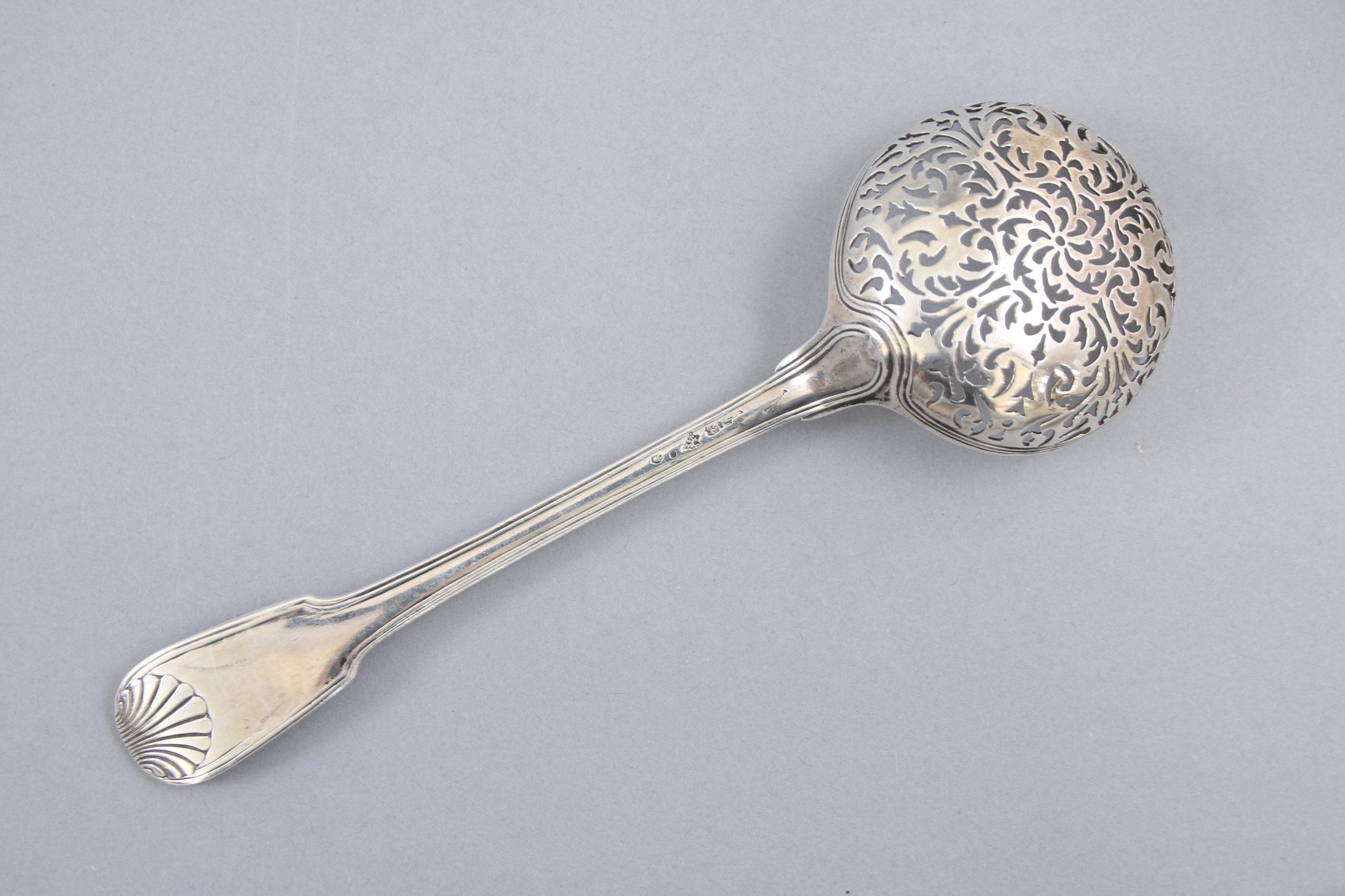 Modèle filet coquille. Le cuilleron à décor ajouré de végétaux stylisés.