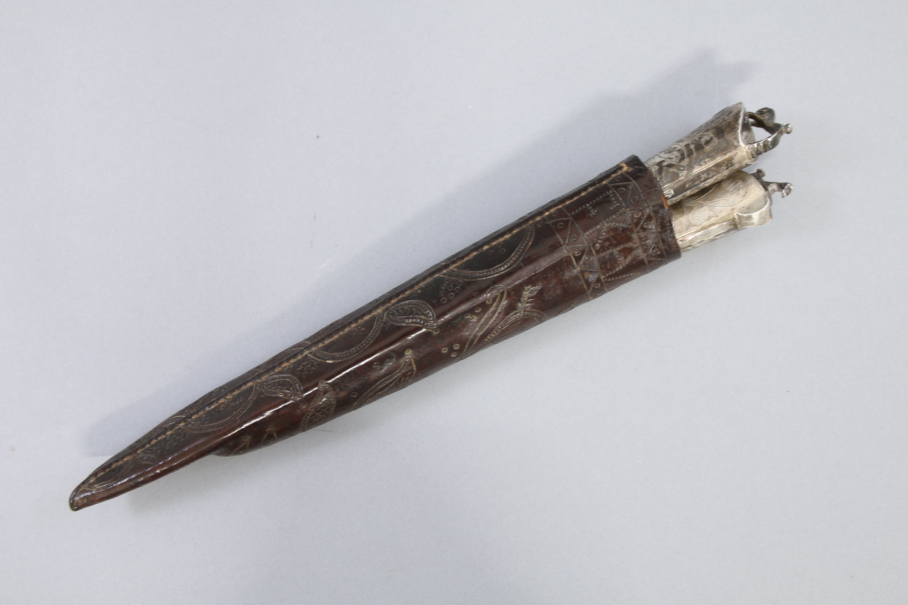 Dans un étui en cuir orné de rinceaux, monogramme FK et date 1767