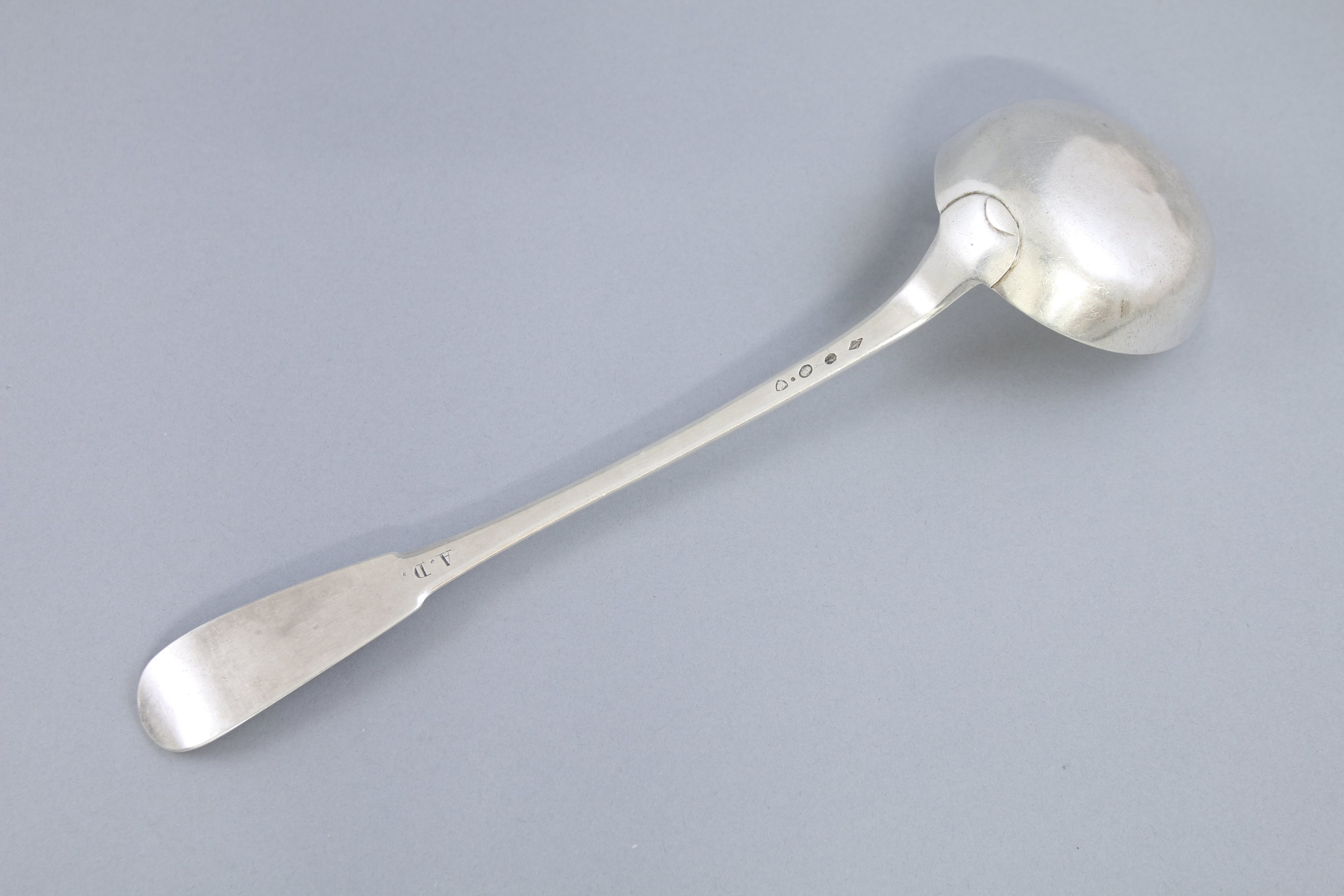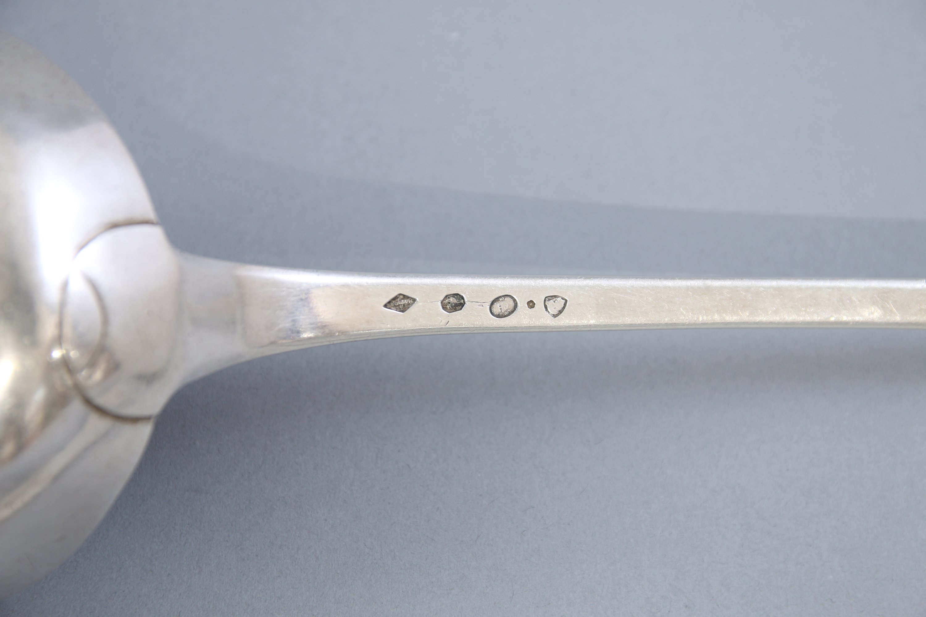 Poinçon : premier Coq (1798-1809). Poinçon de grosse garantie de Paris. Poinçon de grosse recense des départements (tête de Mercure). Orfèvre Pierre-Joseph Dehanne, reçu maître en 1785.