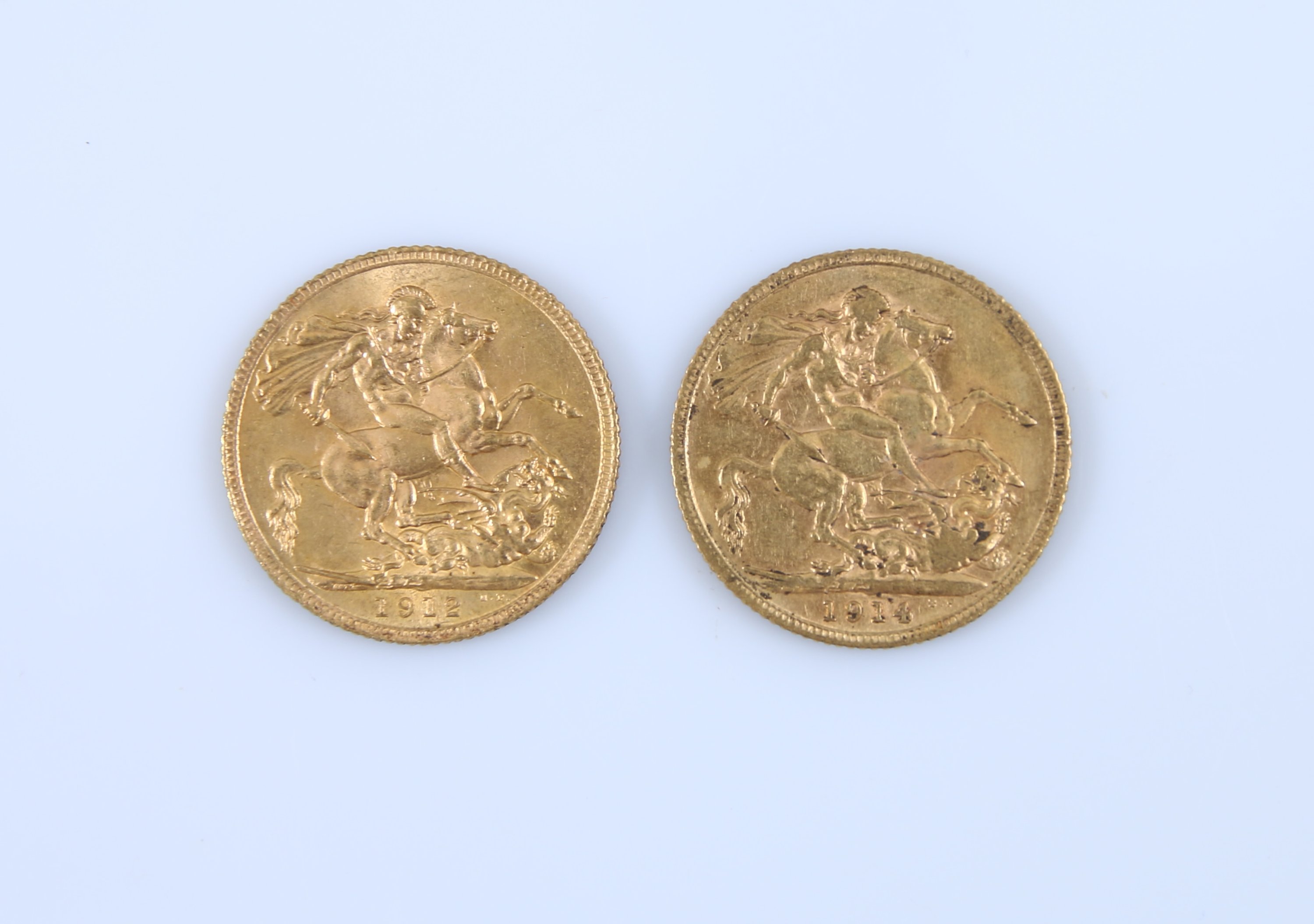 ROYAUME-UNI. DEUX SOUVERAINS OR, Georges V, 1912 et 1914.
