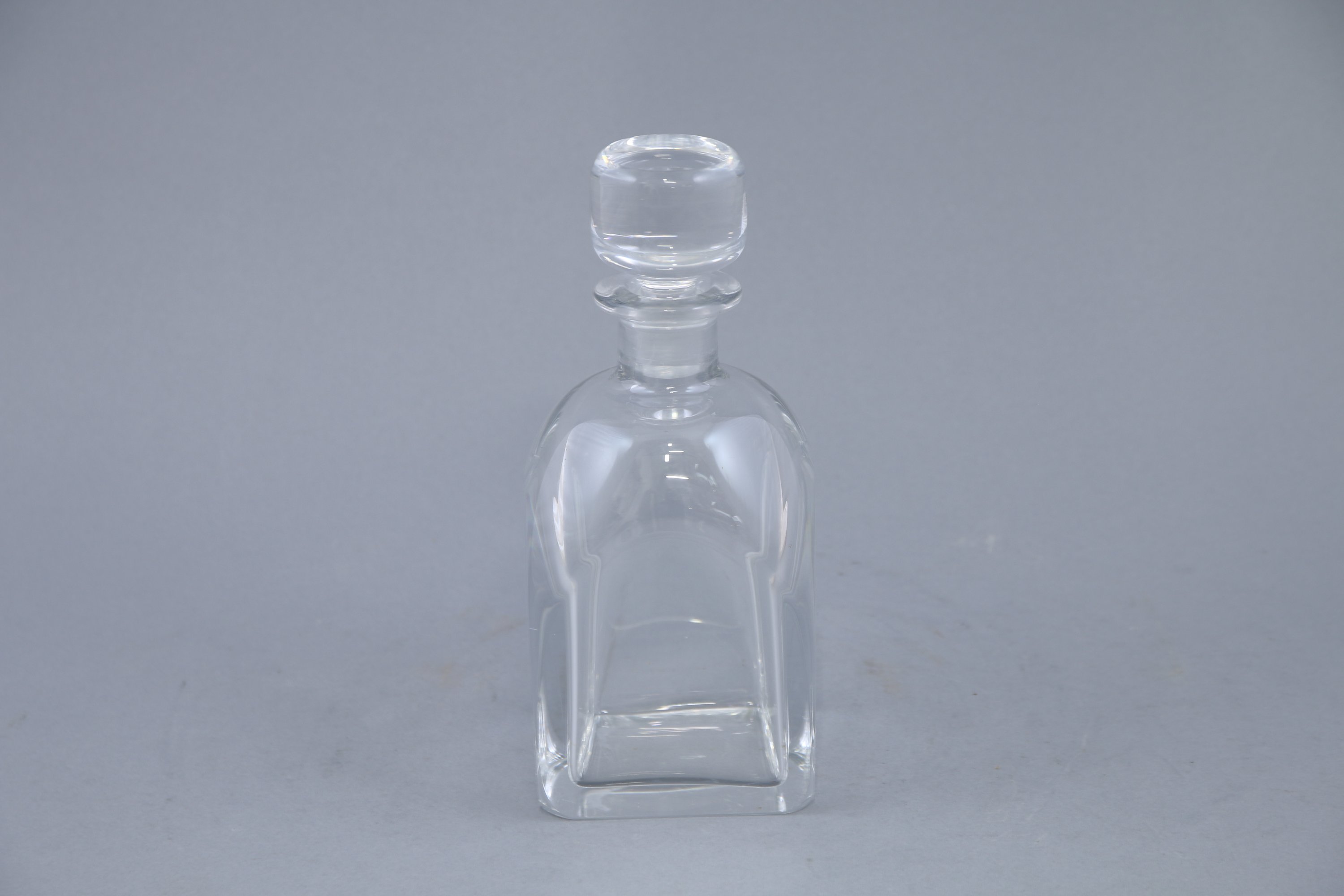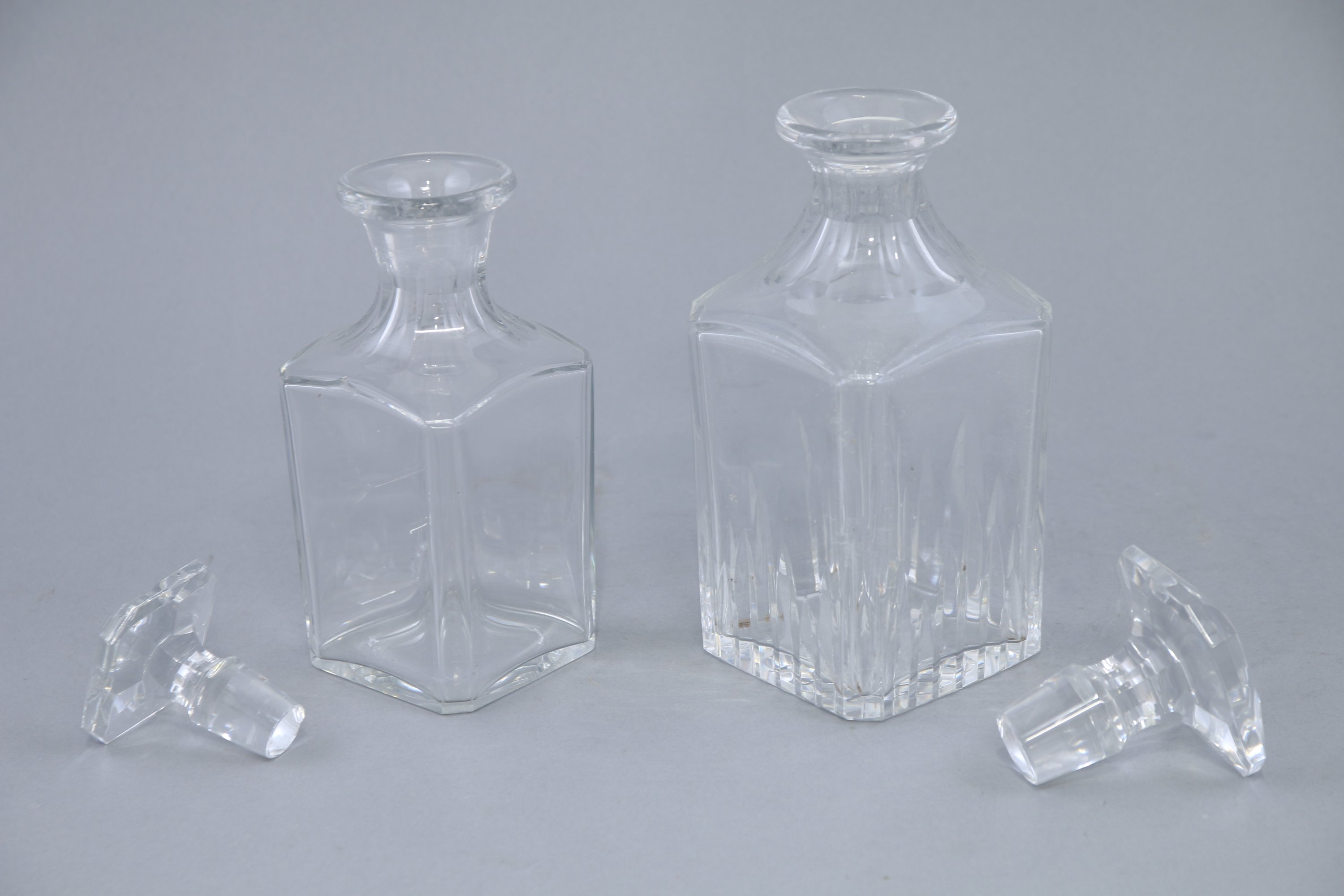 En deux tailles de forme carrée à pans coupés et cols godronnés. Les bouchons à pans coupés.