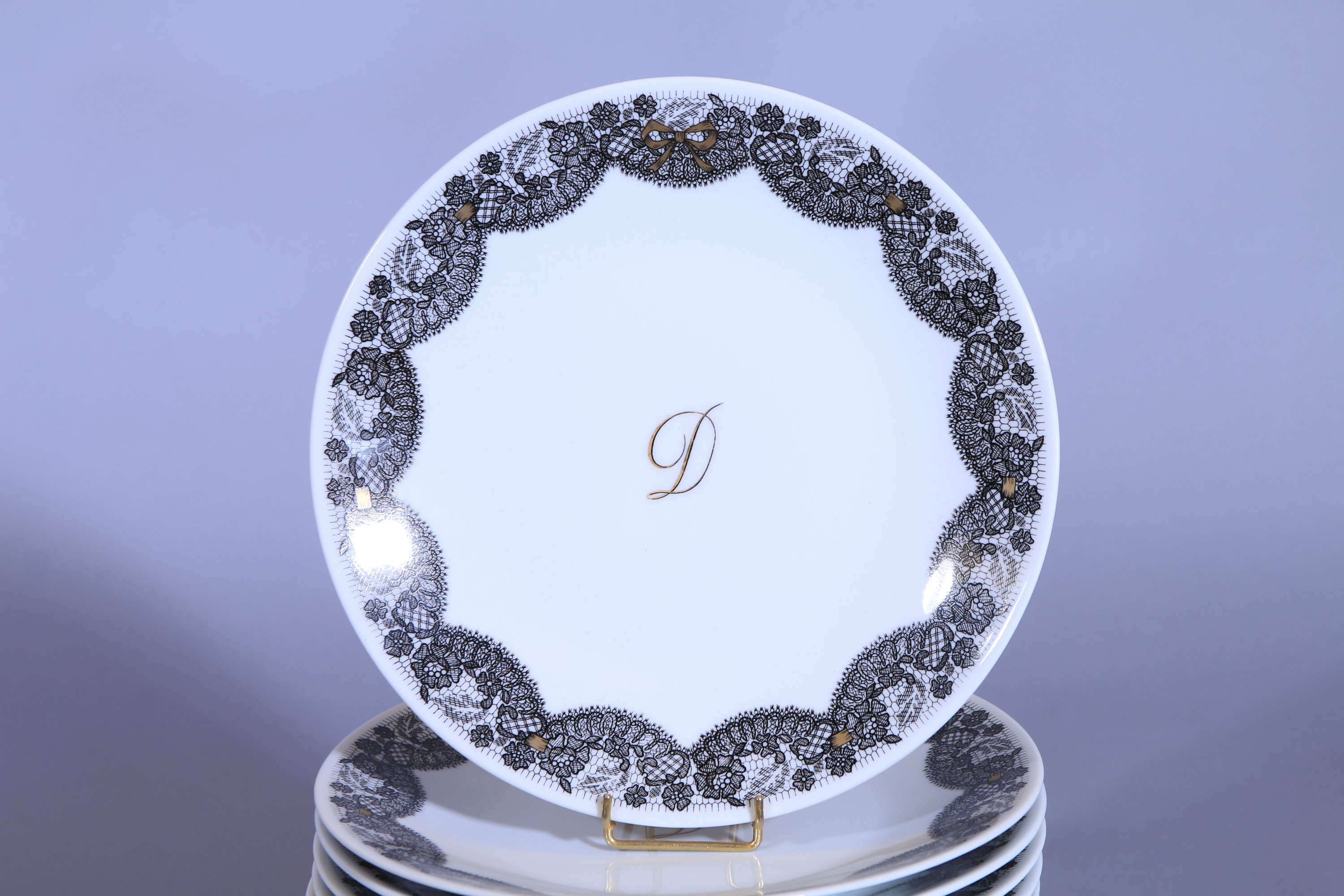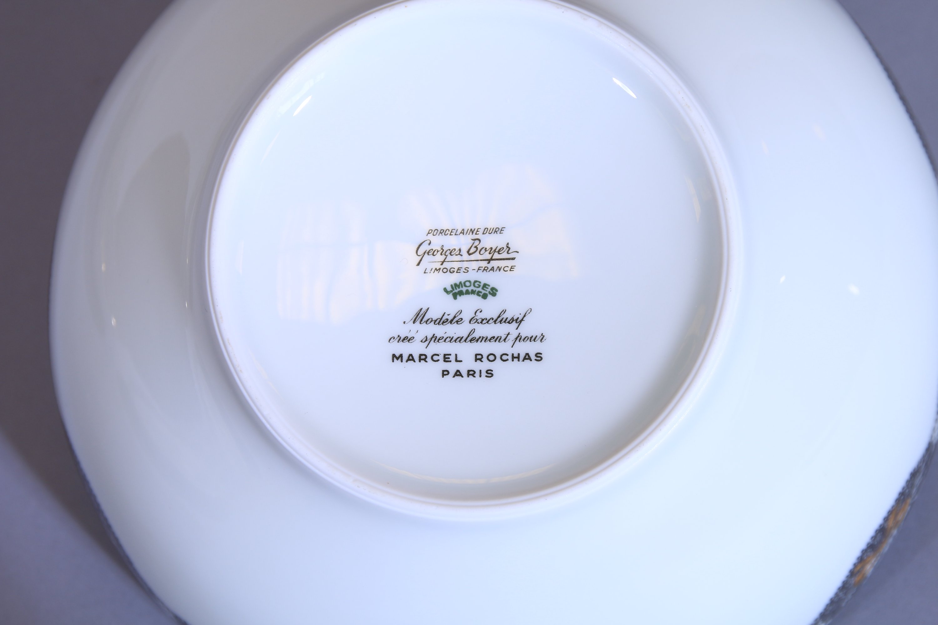 Edité spécialement pour Marcel Rochas par les porcelainiers de Limoges, certaines pièces sont décorées à la main par Le Tallec, ce service d'exception était destiné exclusivement aux parfumeurs français.