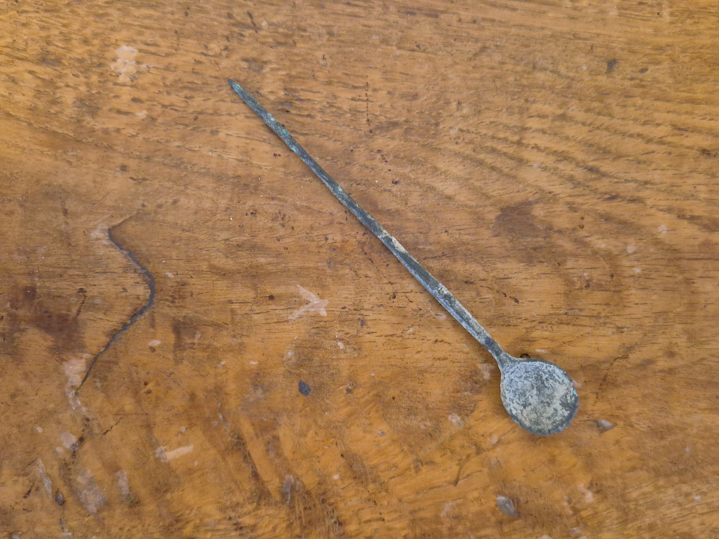 Joint : une cuillère à fard antique en bronze.