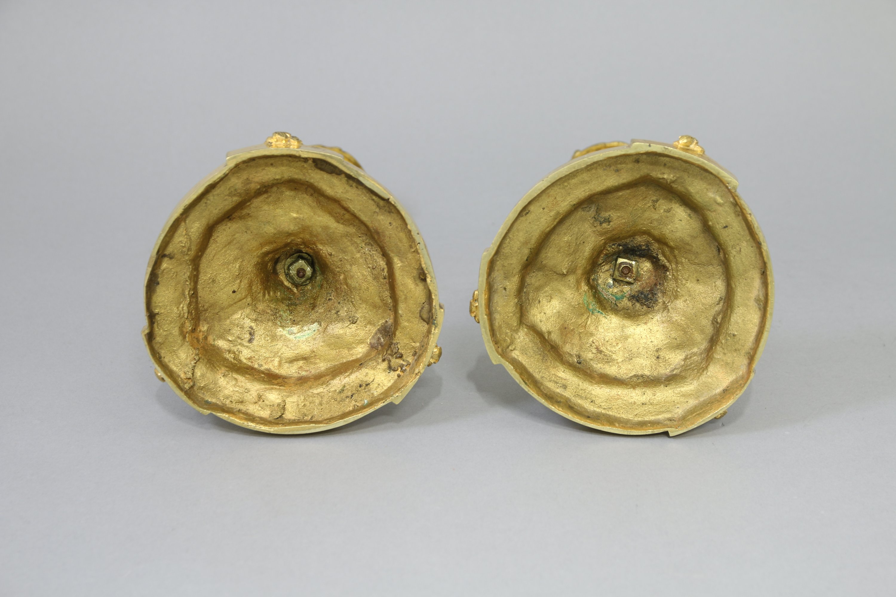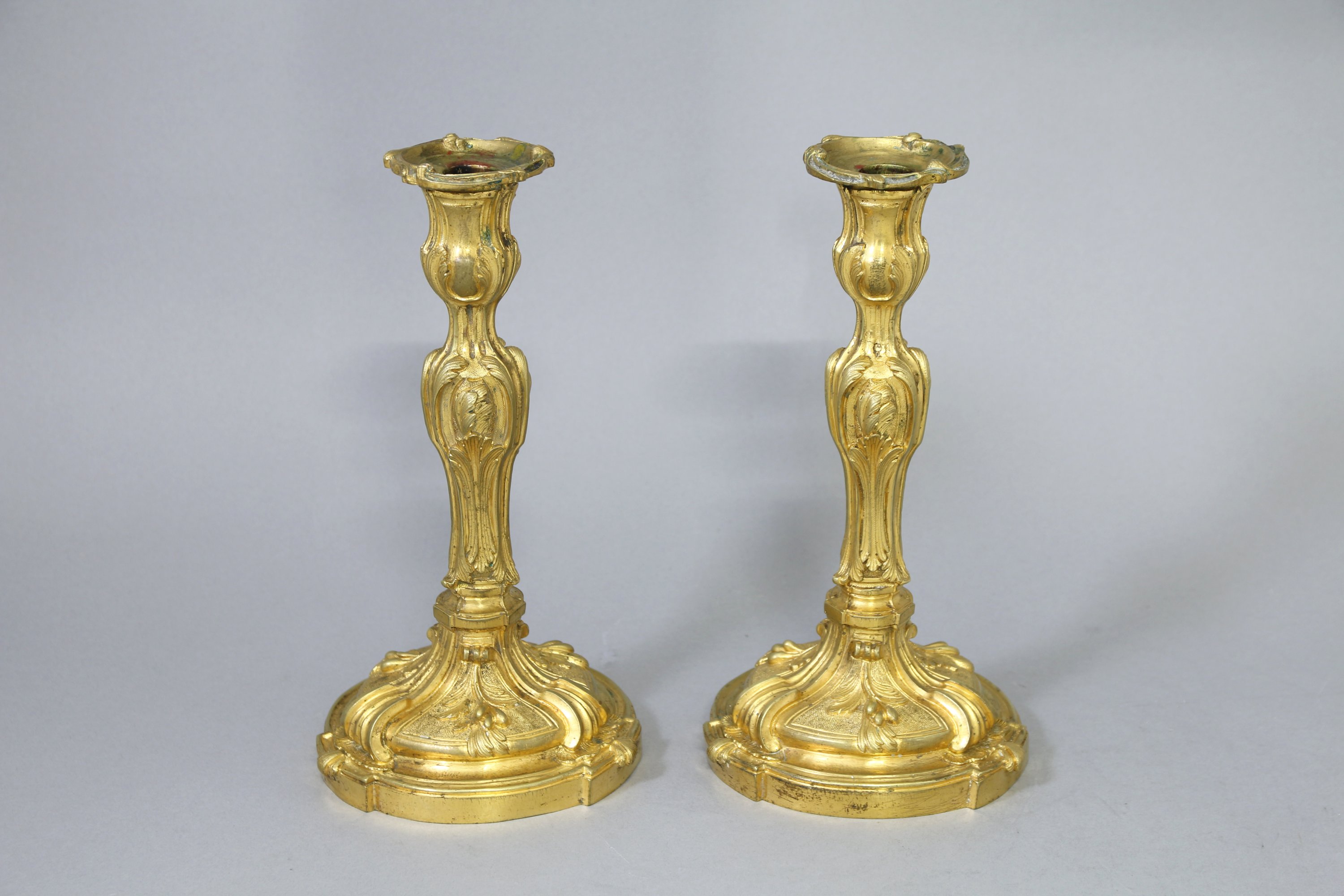 Les binets ornés de feuilles d'acanthe se prolongeant sur les fûts. La base circulaire à motifs de feuilles en alternance de moulures.