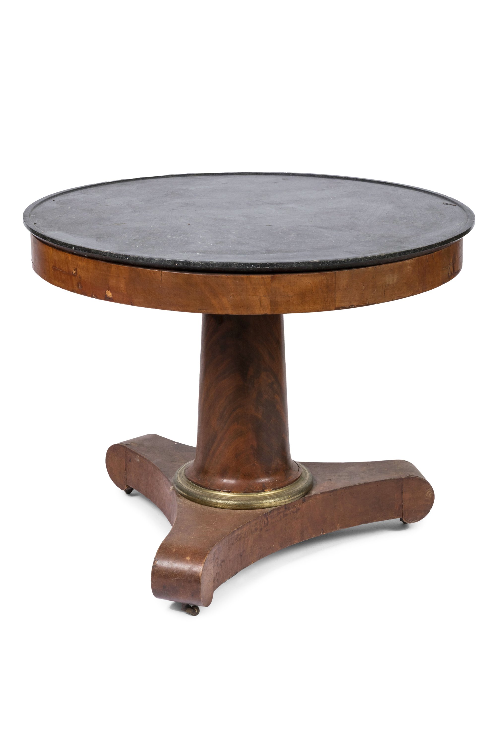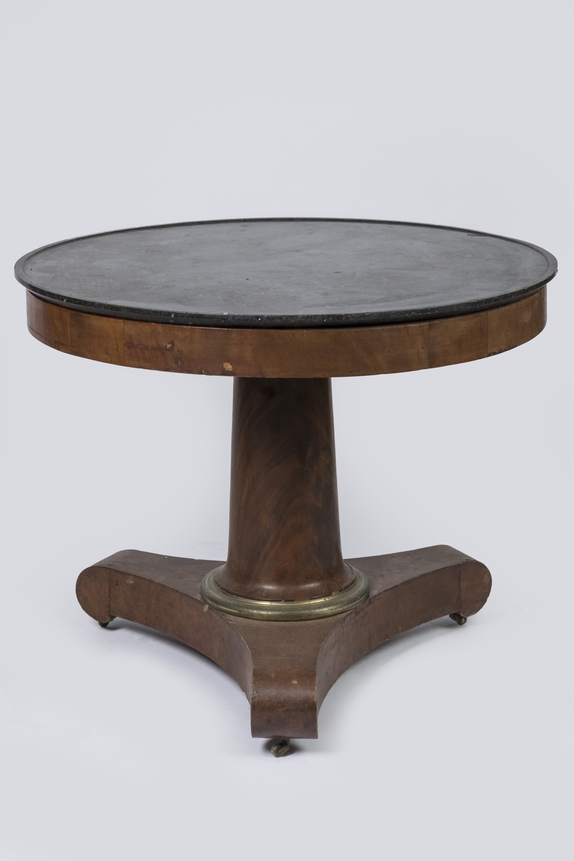 Ceinture à bandeau soutenue par une colonne à bague et reposant sur une base triangulaire aux côtés incurvés.