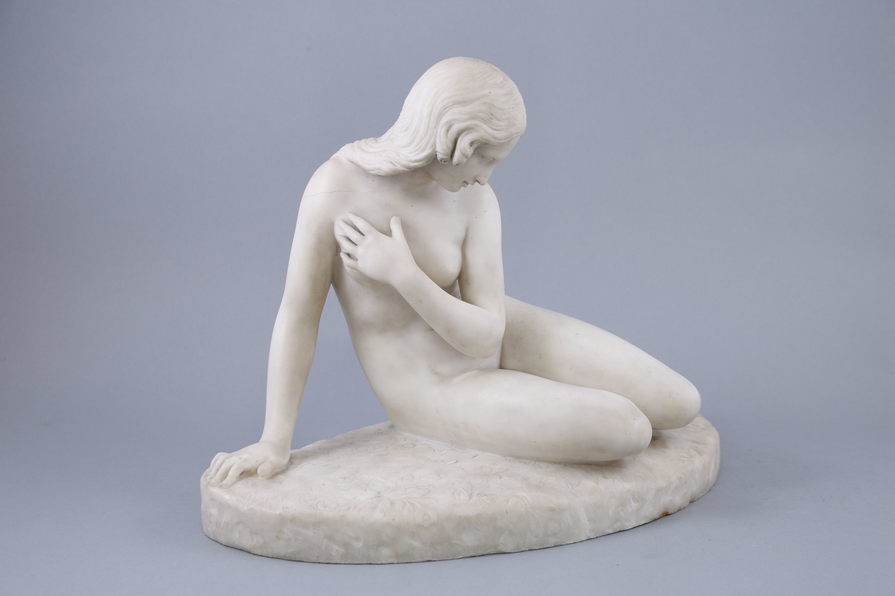 Présentée en 1820 dans une version en plâtre, puis en marbre en 1821, la figure d’Eve à la fontaine d’Edward Hodges Baily rencontre un vif succès et vaut à l’artiste d’être élu membre de la Royal Academy à Londres. Il entre dans l’atelier de John Flaxman en 1807 comme assistant, puis est admis aux Royal Academy Schools en 1809. Fort de sa formation académique, Baily devient l’un des principaux représentants du néoclassicisme anglais. Le marbre offert à la Royal Academy comme « morceau de réception » (aujourd’hui conservé à la Bristol City Art Gallery) assure au sculpteur une renommée européenne lors de sa présentation aux Expositions universelles de 1853 et 1862. Une seconde version en marbre est conservée à la Carlsberg Glyptotek de Copenhague.