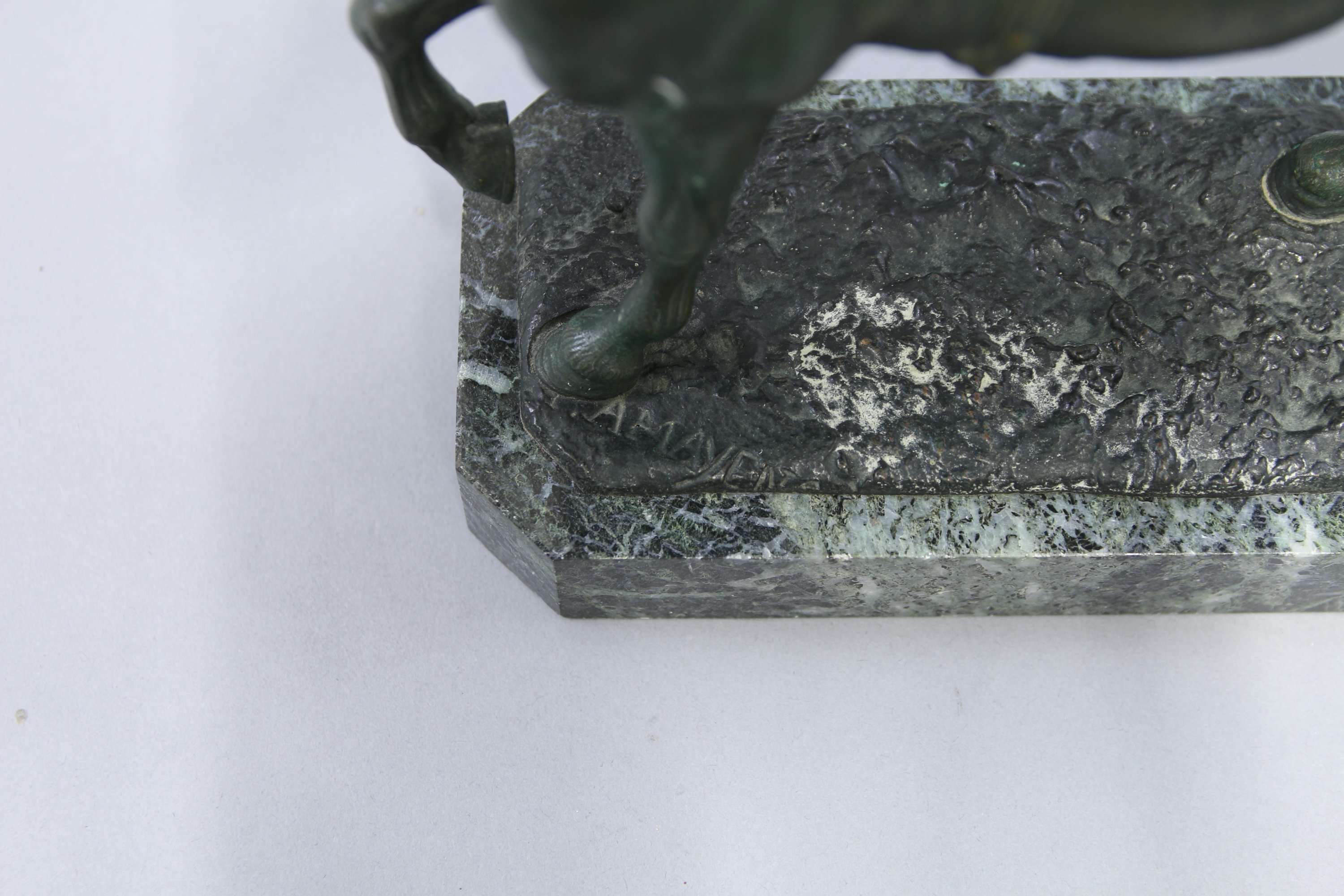 Sur un socle en marbre vert de mer à pans coupés. Haut. totale 24 cm.