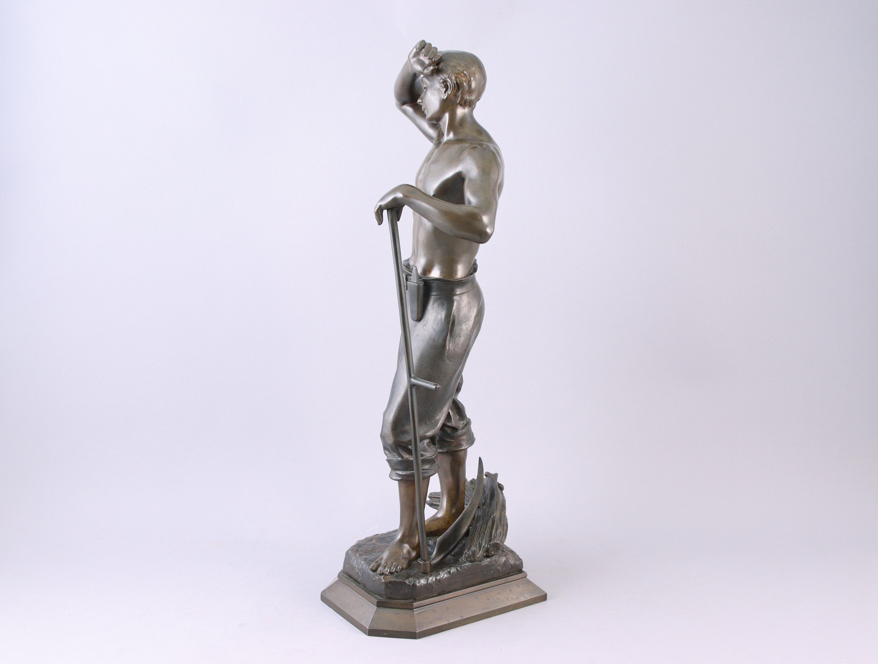 Elève d'Alexandre Falguière, Julien Caussé est issu d'une famille de sculpteurs. Fils d'Auguste-Marie Caussé (1834-1907) et frère du sculpteur Auguste Caussé (1870-1924), Julien commence à exposer au Salon des Artistes Français en 1888. Son oeuvre est plurielle. Il traite autant les nus féminins que les travailleurs de la IIIe République, à l'instar de ce "Moissonneur".