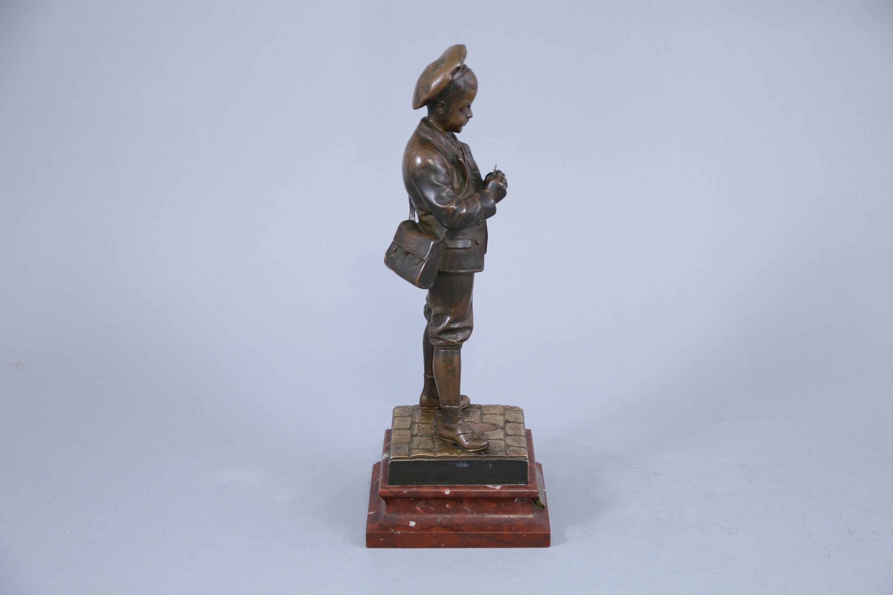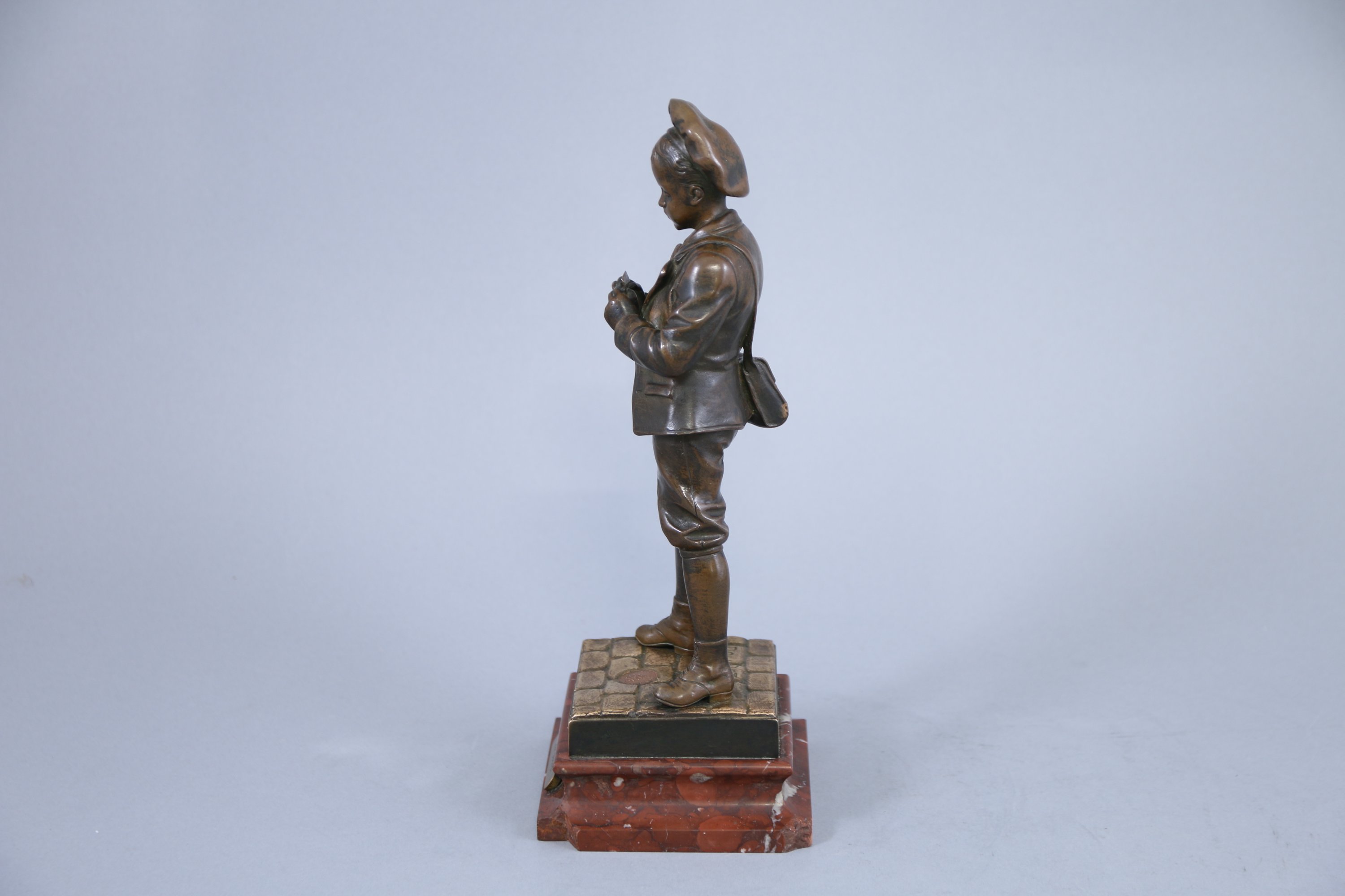 Sur un socle en marbre griotte avec une plaque de titre. Haut totale. 29,5 cm.
