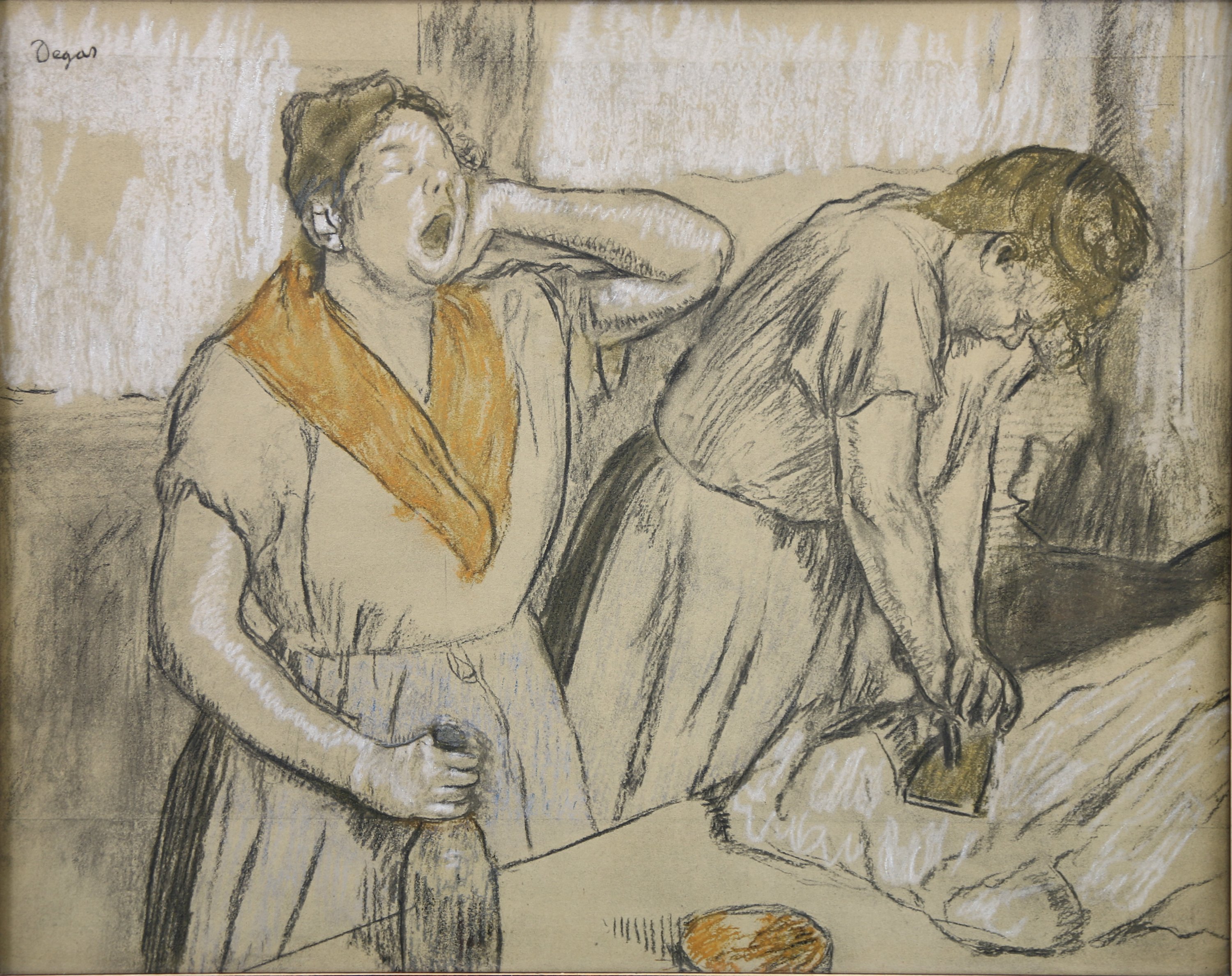 Joint : d'après Edgar Degas (Français, 1834-1917), Les repasseuses, entre 1884-86, Lithographie réhaussée, Haut. 31 Larg. 39 cm. L'oeuvre originale est conservée au musée de l'Orangerie, Paris (n° RF1985).