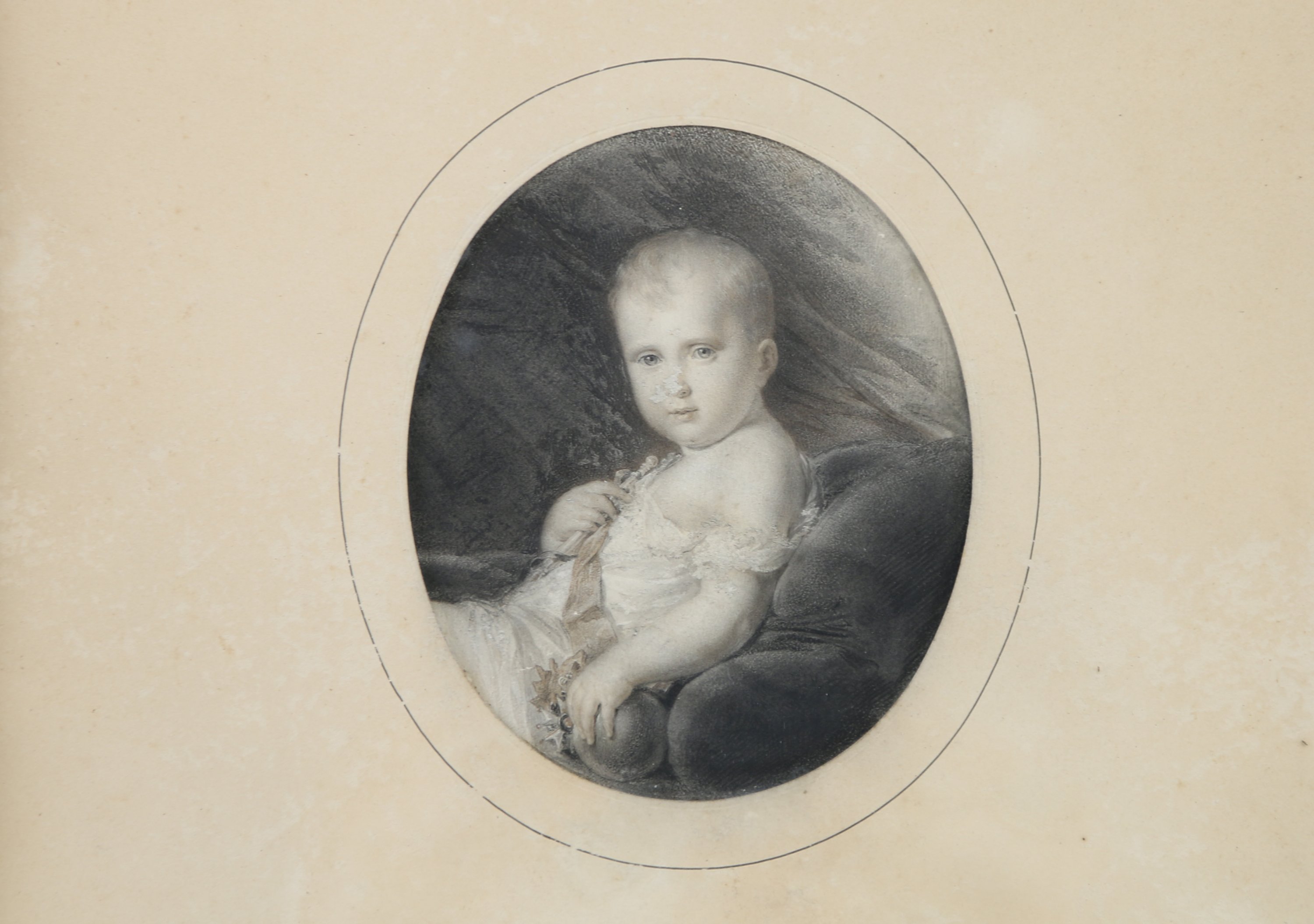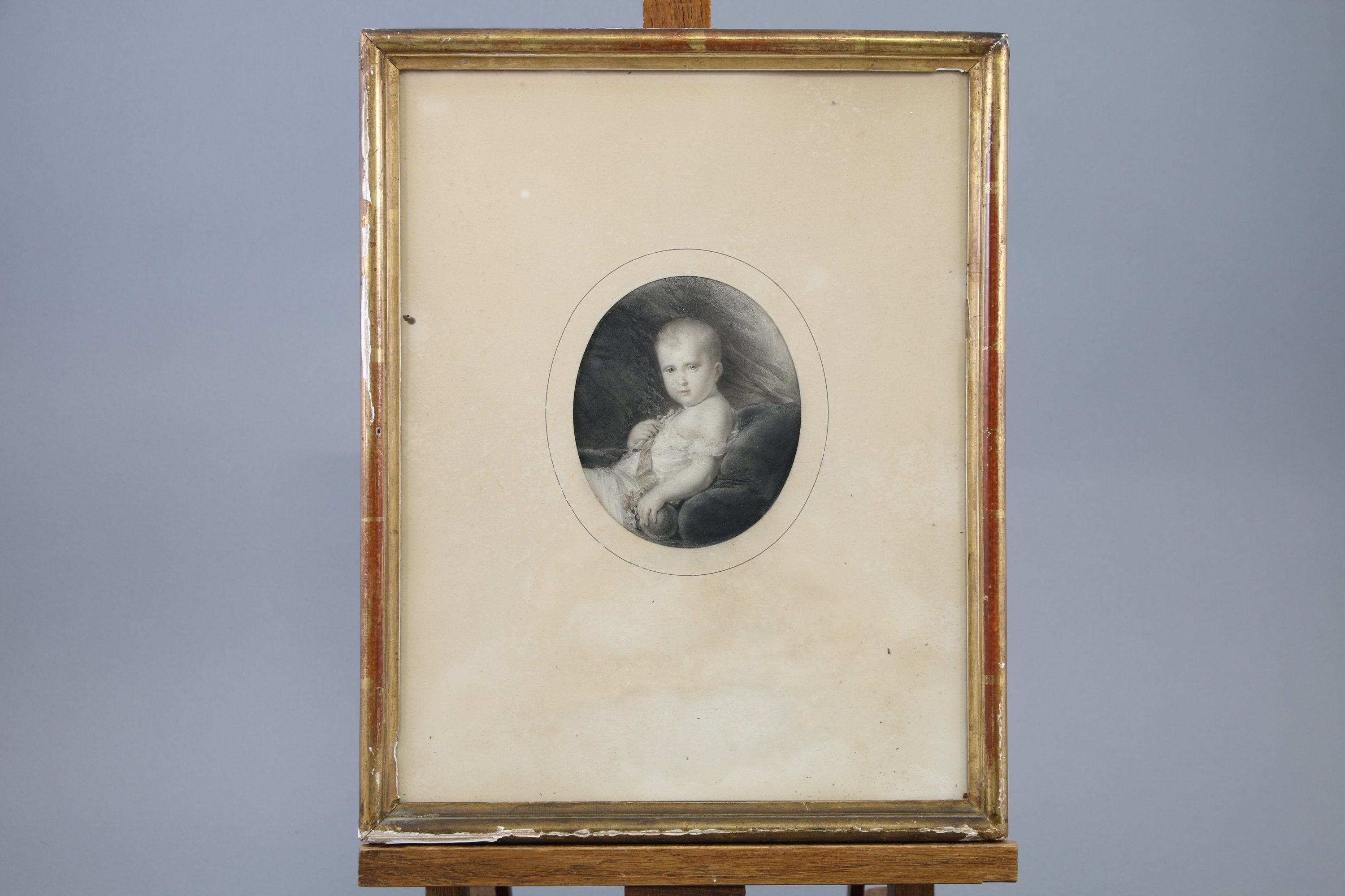 Gravure ovale réhaussée