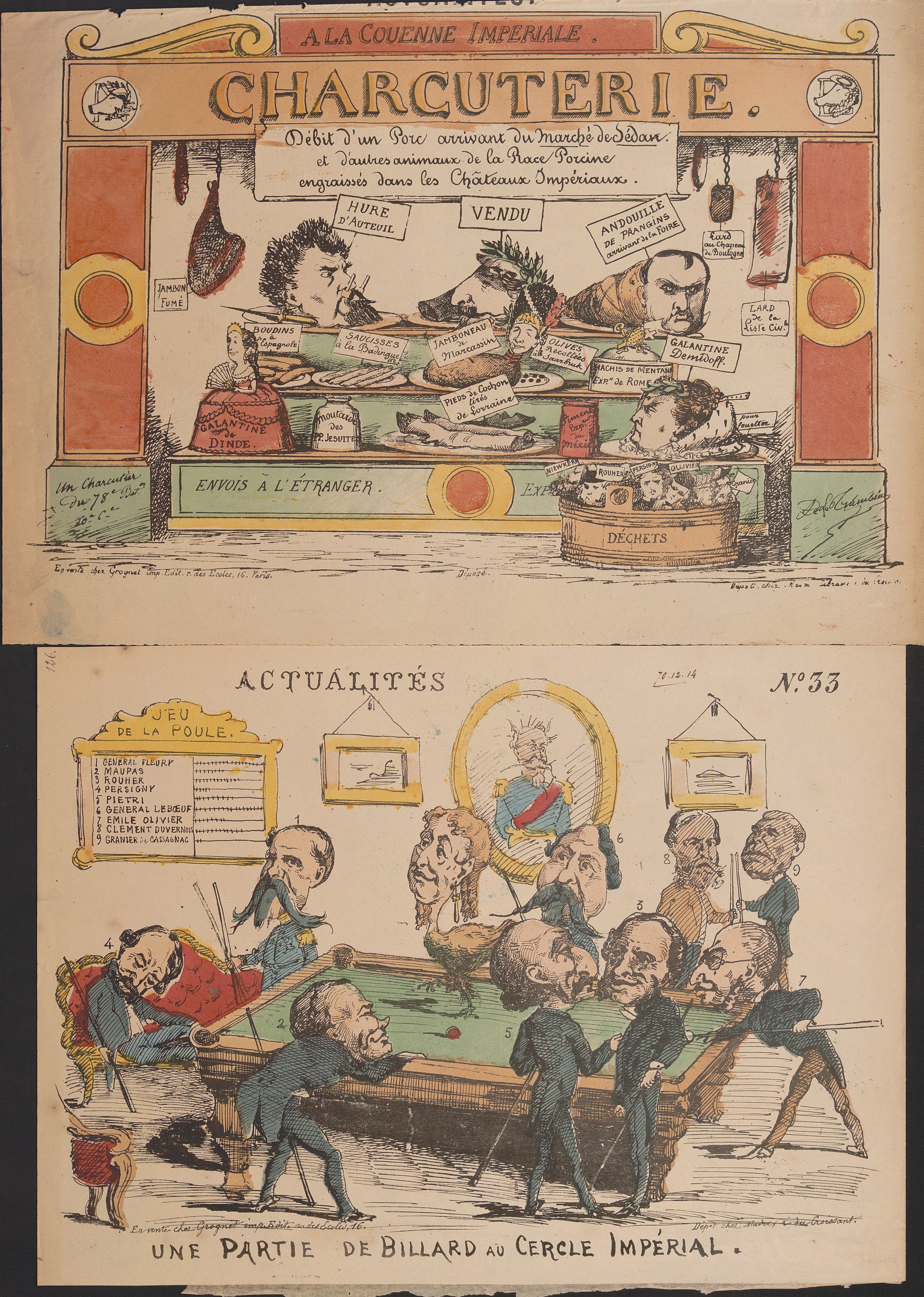 Né à Champigny (Seine) en 1834 et décédé à Paris le 18 mai 1875, Jules Jean Marie Grognet est breveté taille-doucier depuis le 26 octobre 1857 et fait des vignettes pour livres classiques. En 1870, il demande un brevet de lithographe, installé rue des Ecoles (actuellement rue de la Montagne Sainte-Geneviève). Il est l’un des imprimeurs actifs durant la guerre de 1870-1871 et la Commune de Paris. Il fait faillite le19 juin 1872. Le 7 juin 1873, il se déclare à nouveau lithographe, libraire et taille-doucier.