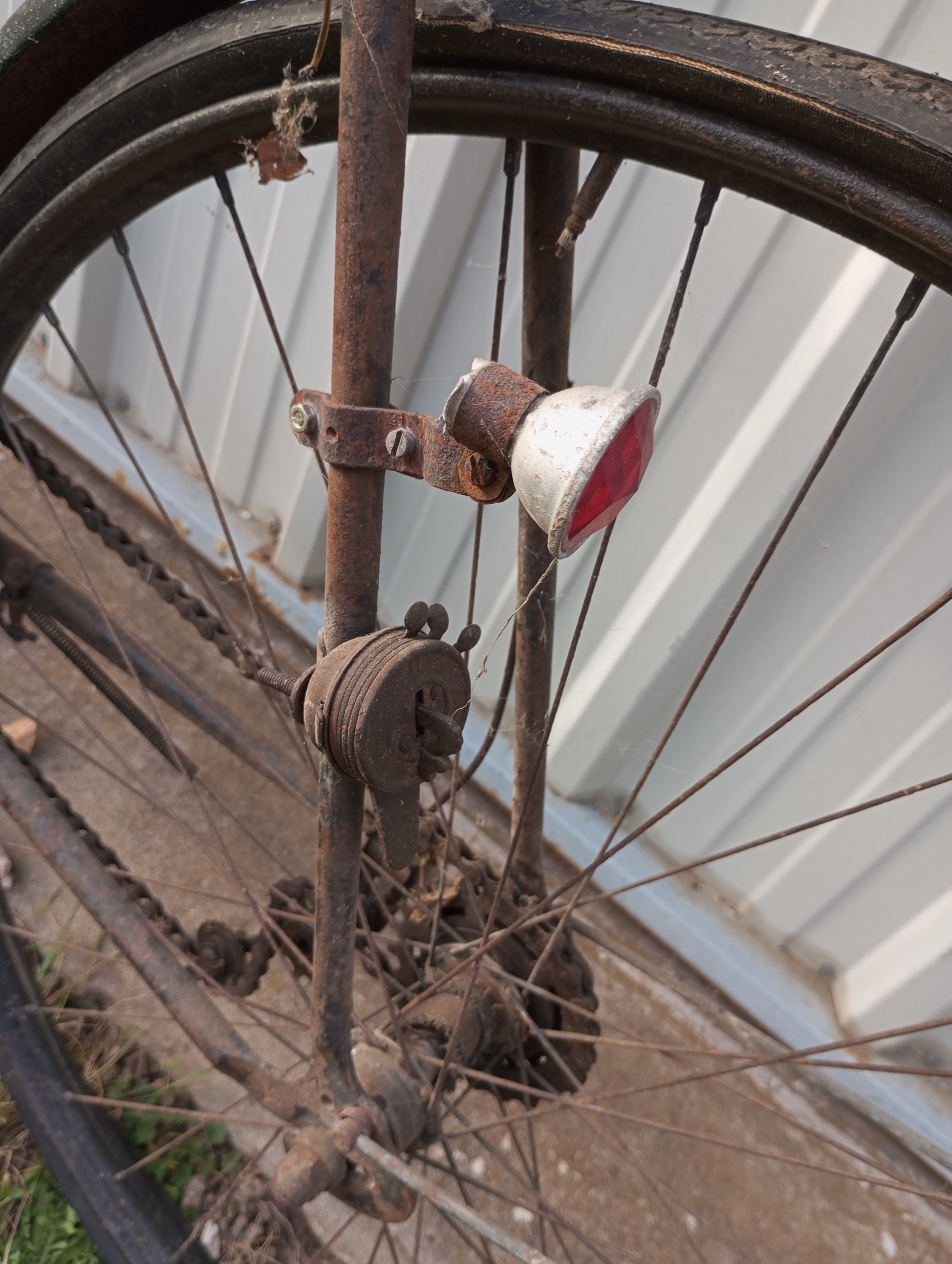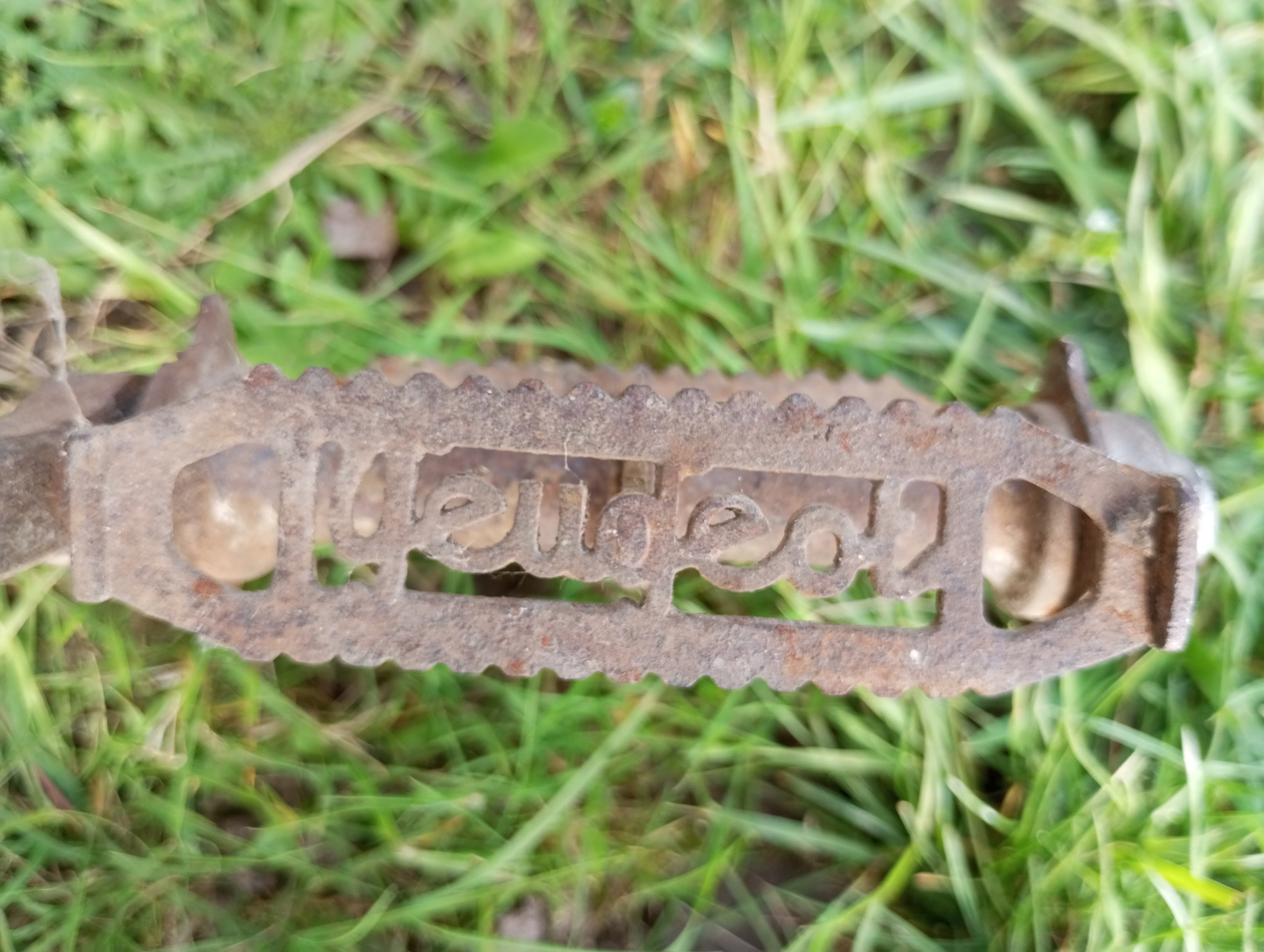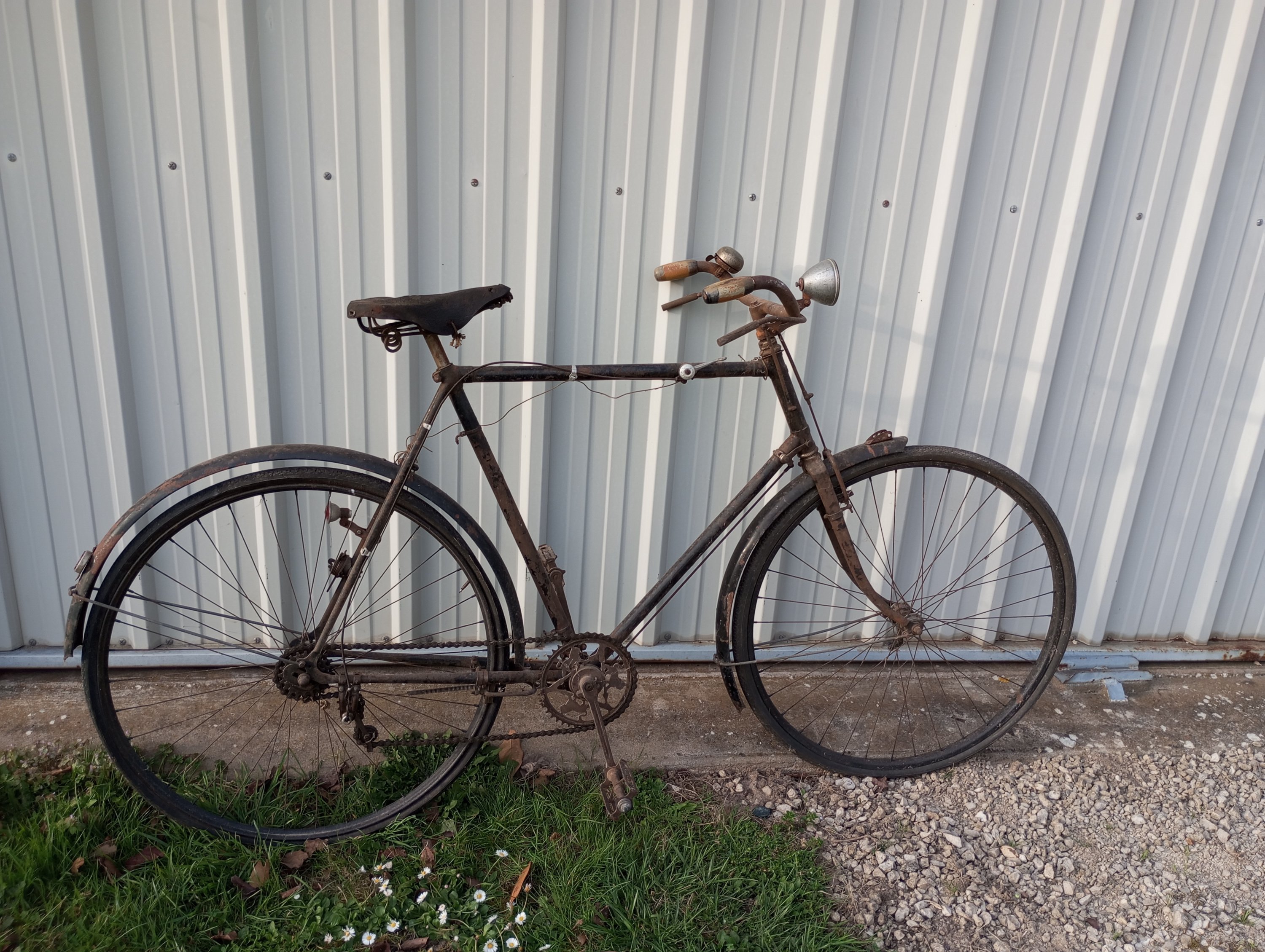 Plateau au triple sigle du lion, et pédales marquées "Peugeot".