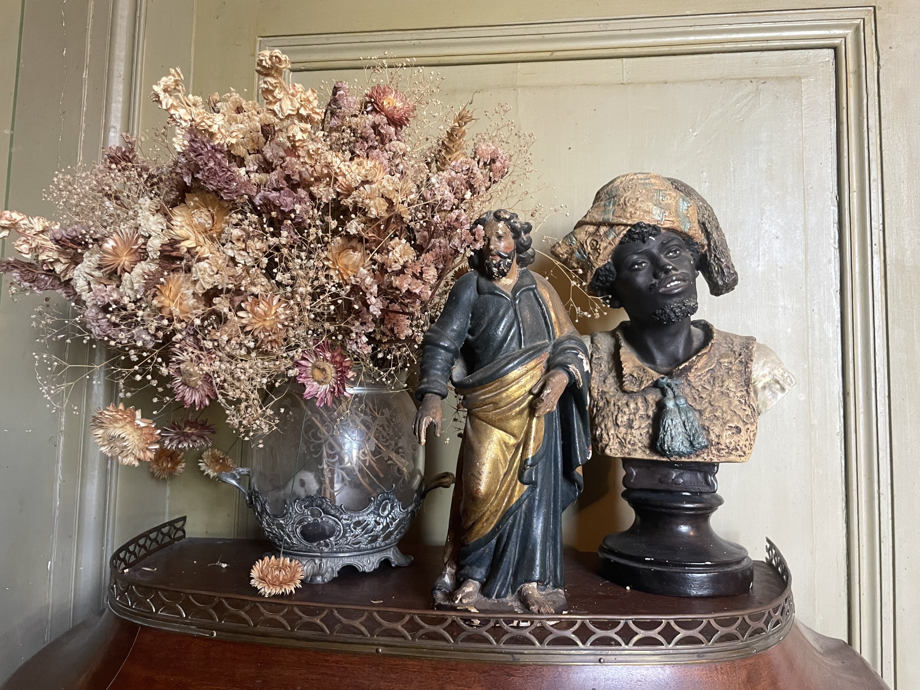 Mobilier de style Haute Epoque, Louis XIII, Louis XV, Louis XVI et collections de bibelots dont pendules, éventails, sceaux de cire, collections de céramiques, médailles, souvenirs militaires, peintures et deux piano droits