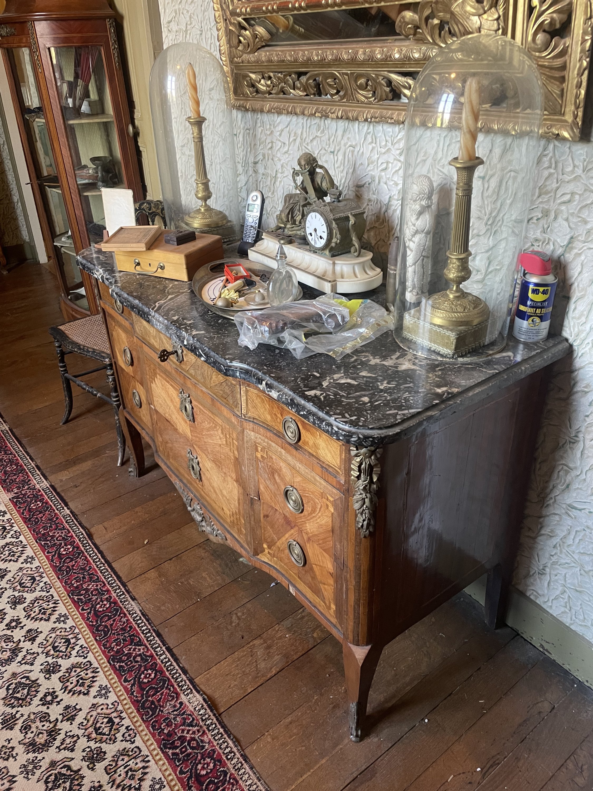 Mobilier de style Haute Epoque, Louis XIII, Louis XV, Louis XVI et collections de bibelots dont pendules, éventails, sceaux de cire, collections de céramiques, médailles, souvenirs militaires, peintures et deux piano droits
