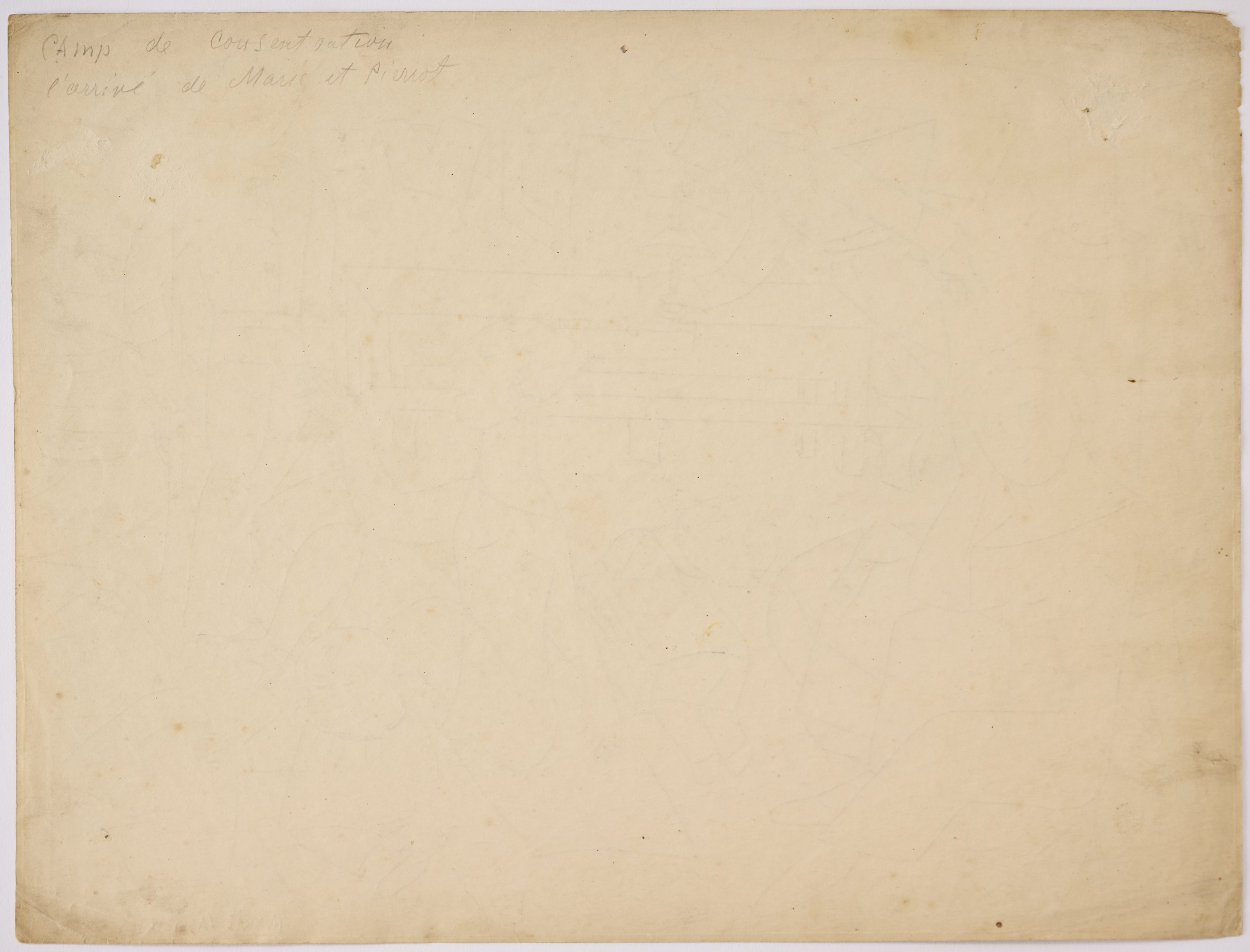Légendé au revers "Camp de concentration, l'arrivée de Marie et Pierrot".