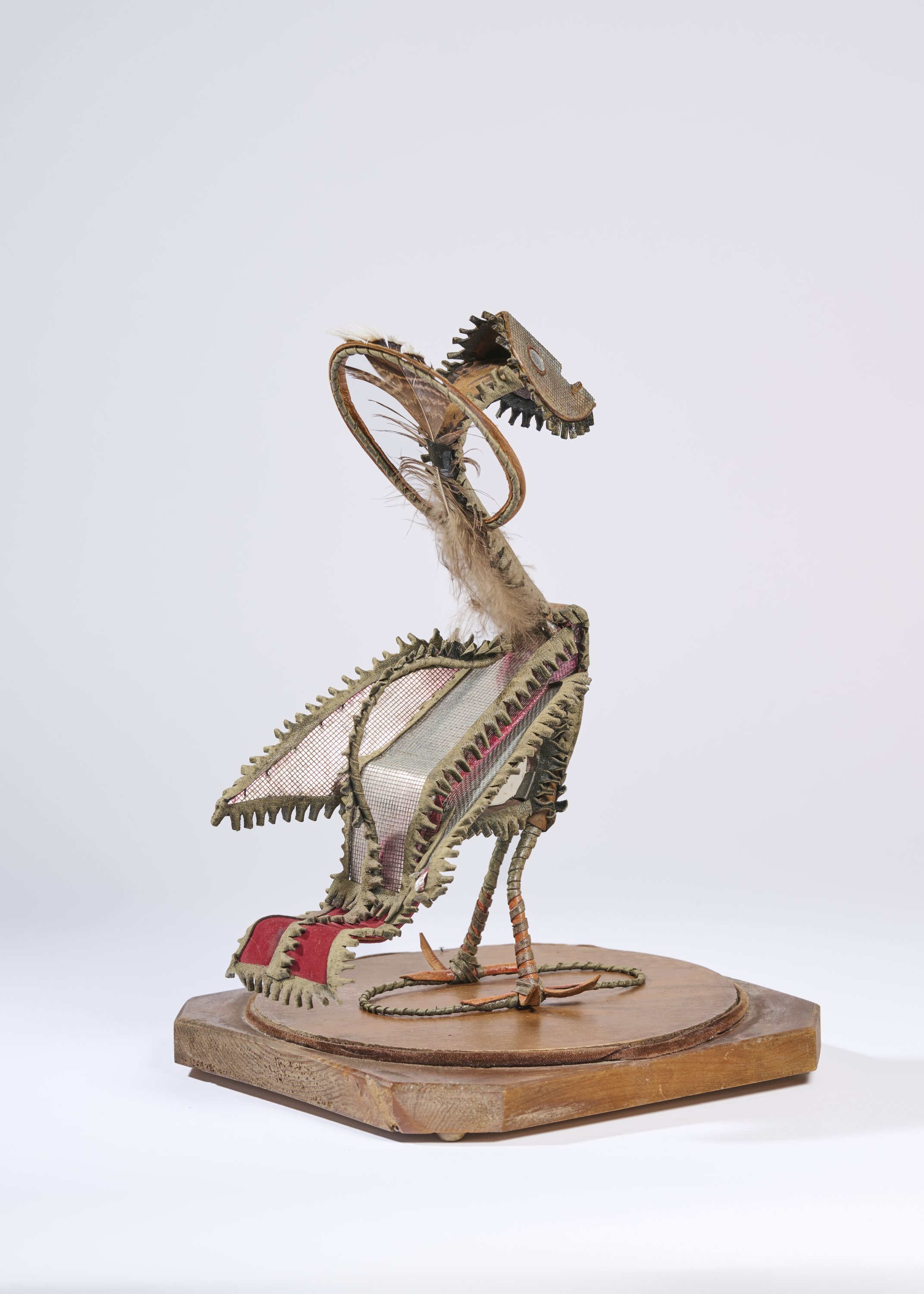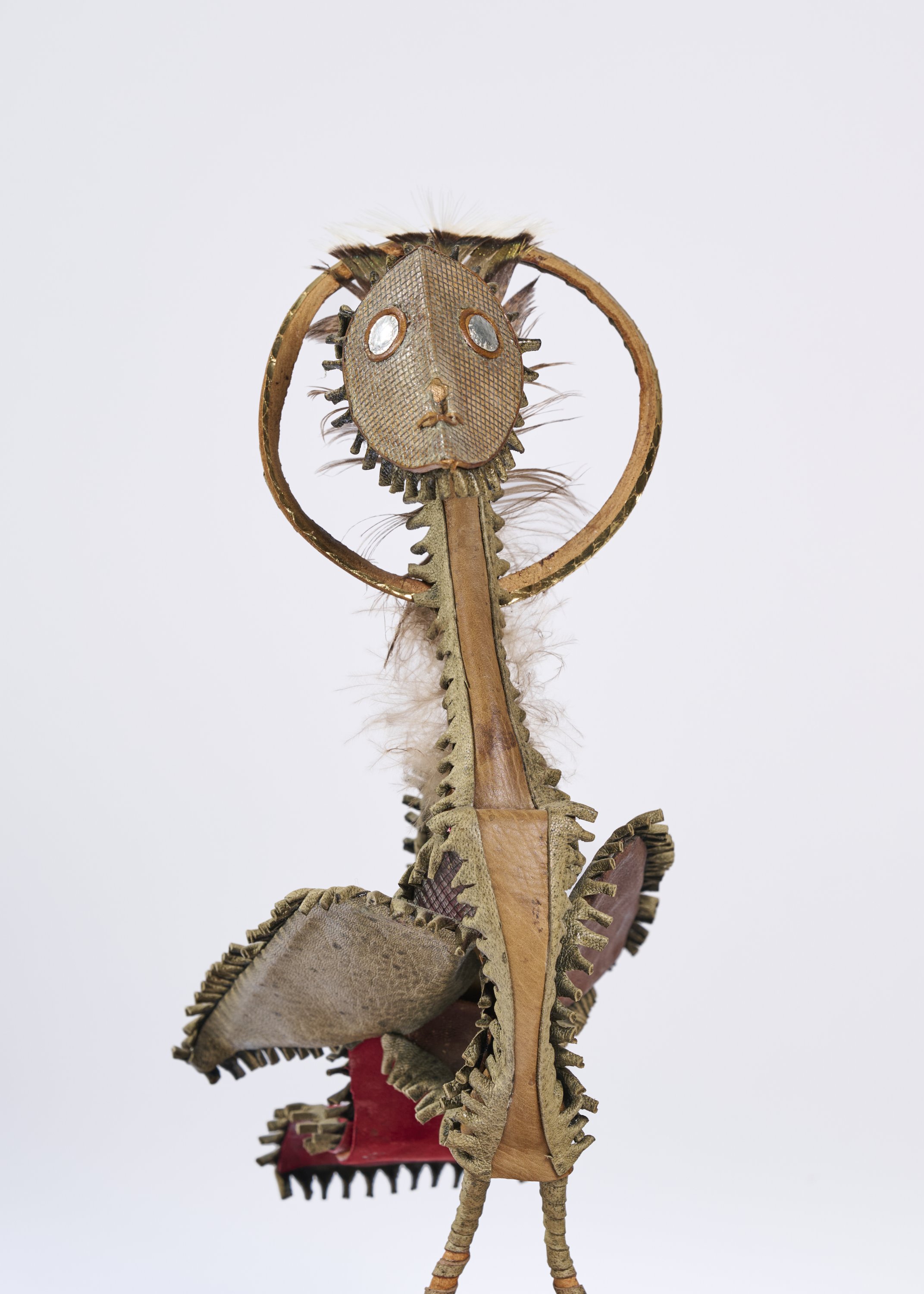 Métal, cuir, plumes, tissus.