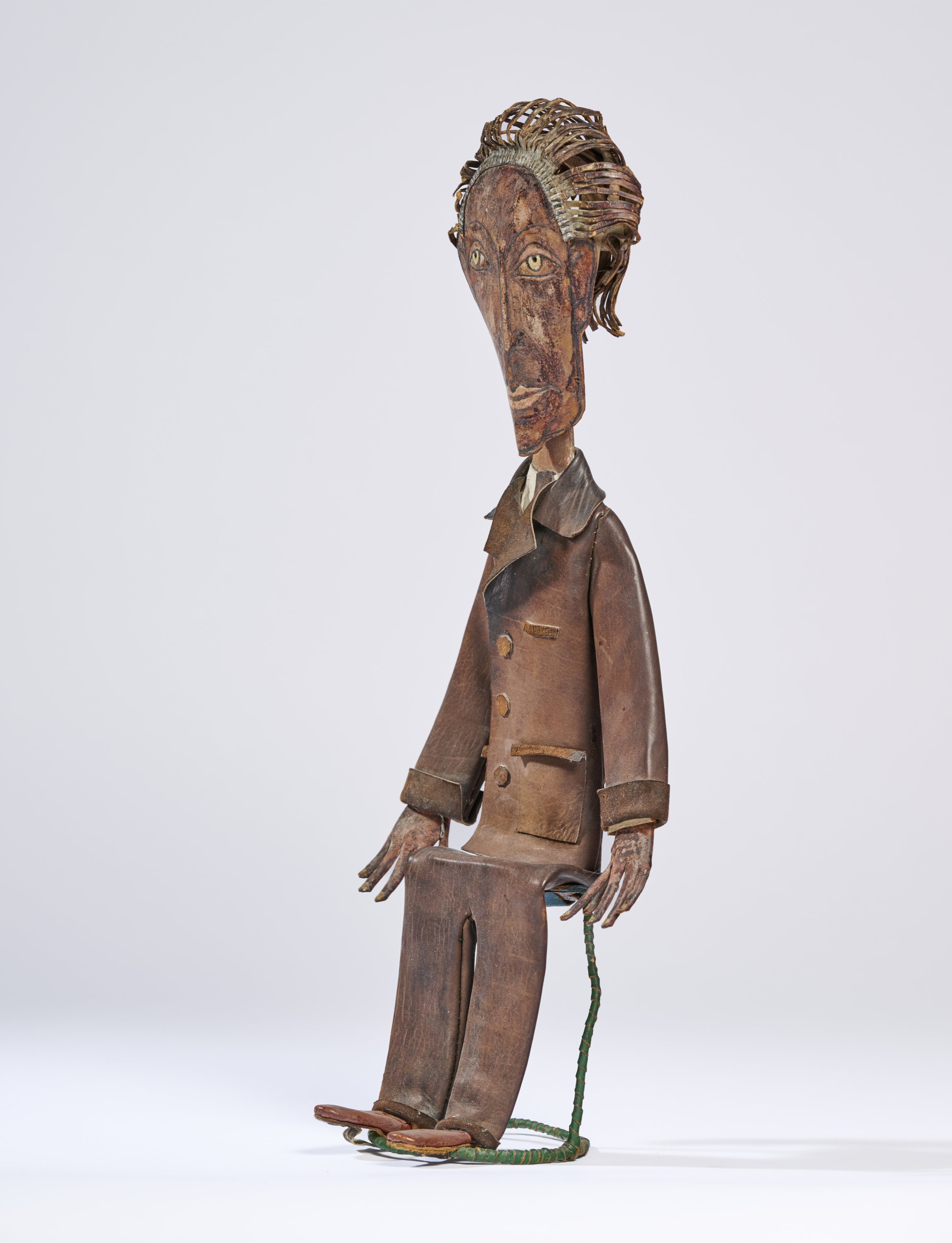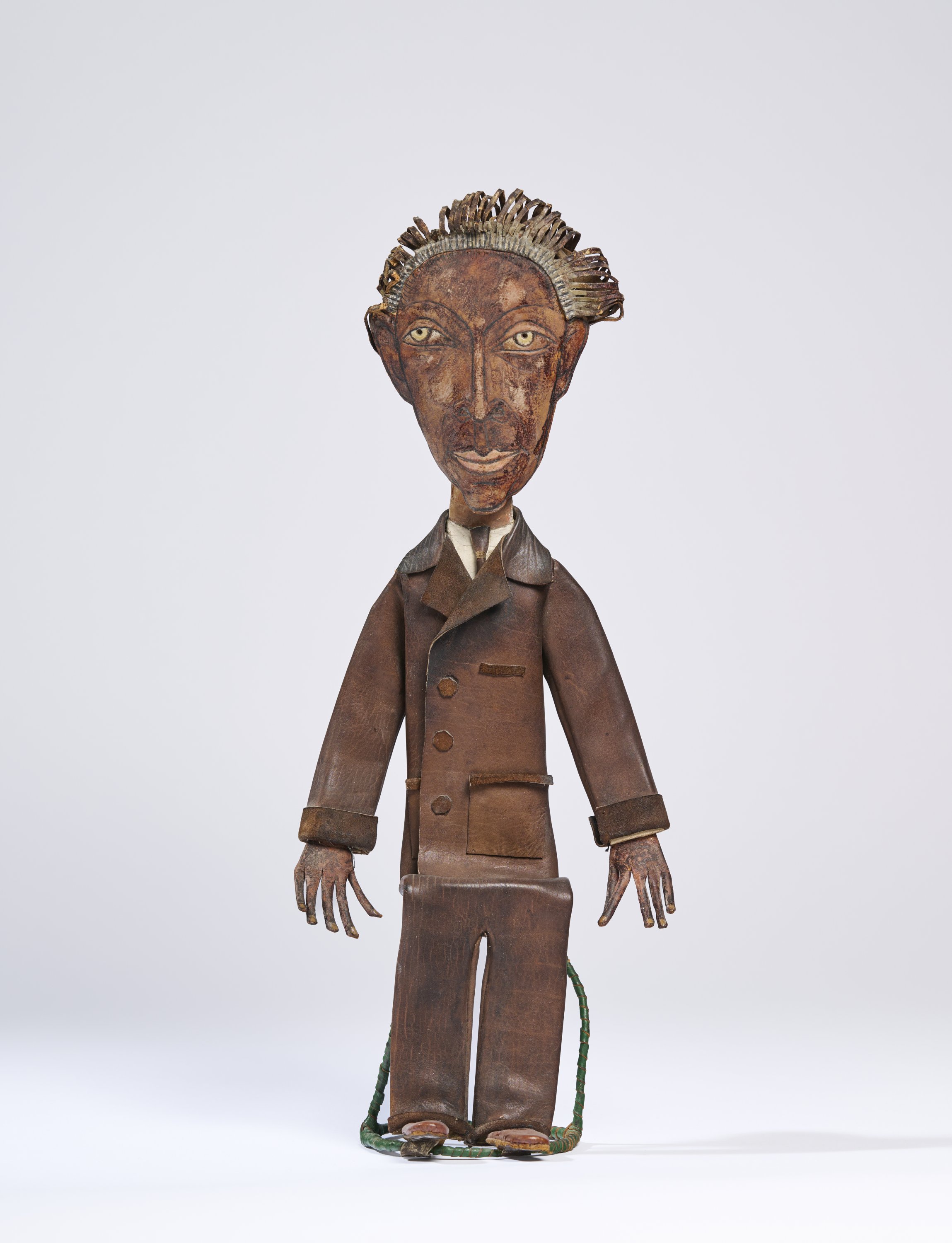 Cuir peint, carton et armature métallique.