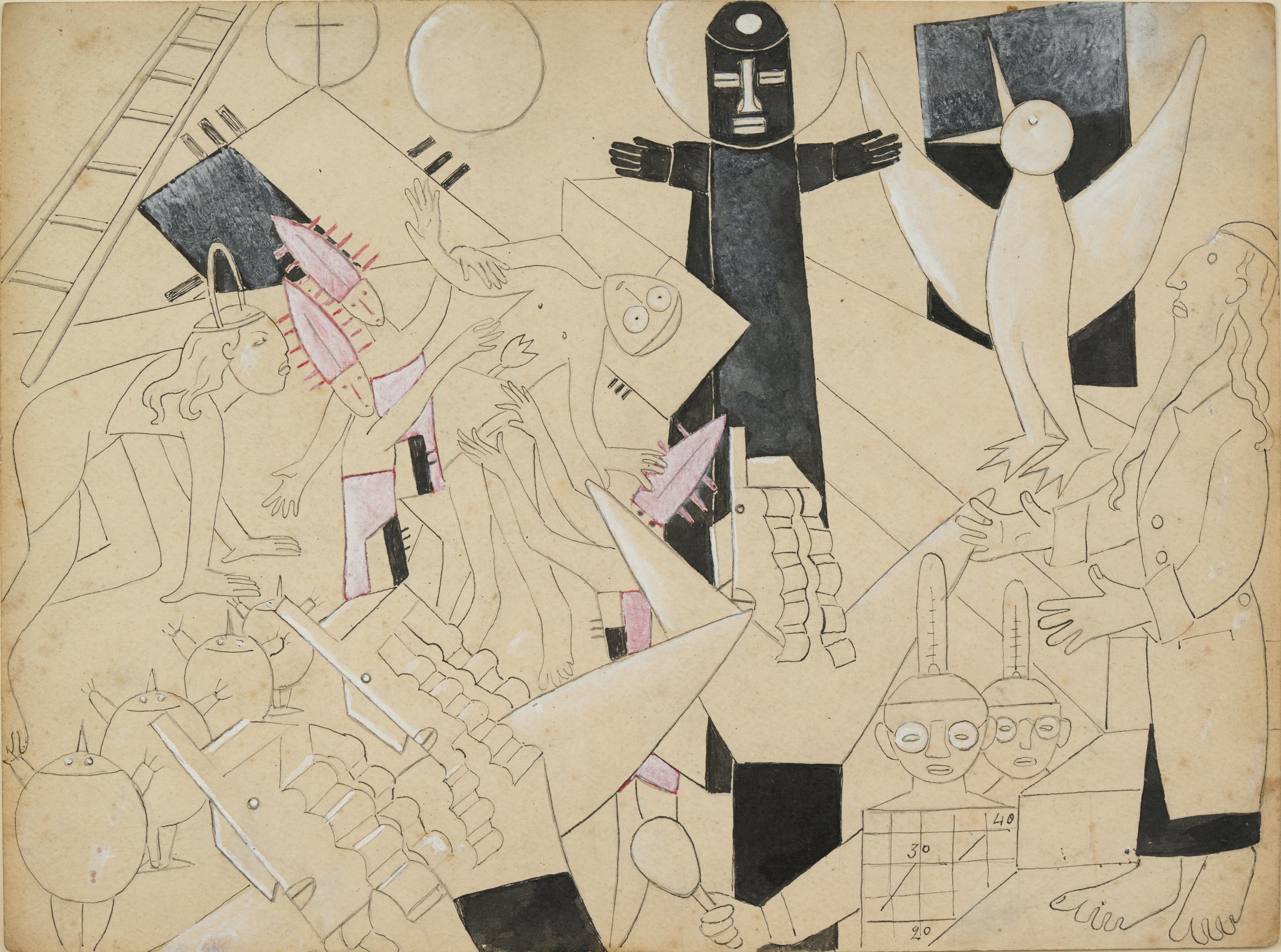 Crayon, encre, gouache et rehaut de blanc.