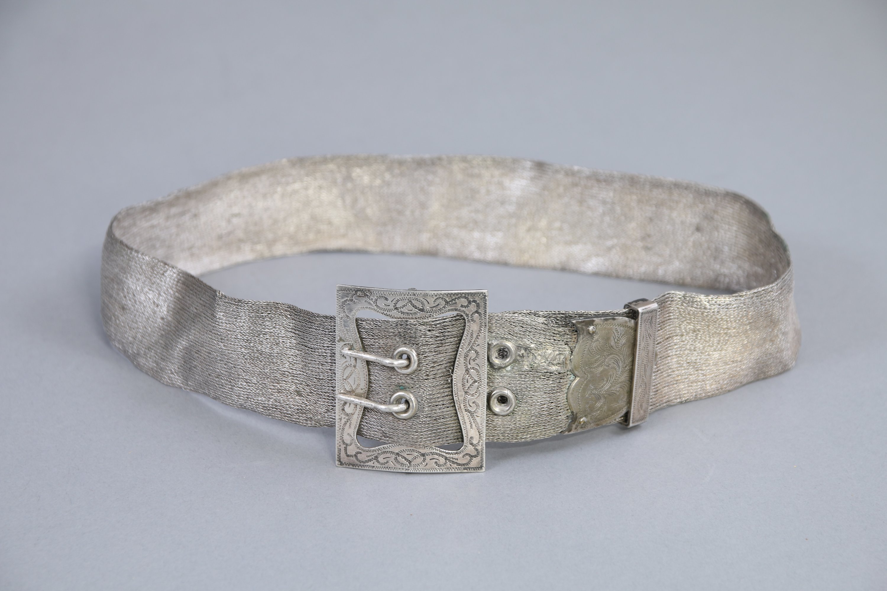 A mailles polonaises et boucle à décor gravé...