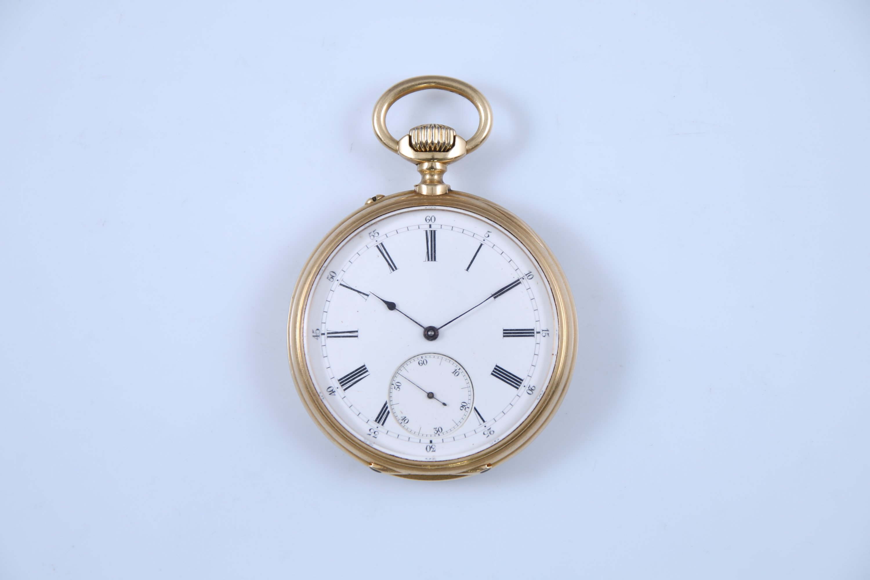 Le cadran émaillé blanc indiquant les heures par des chiffres romains. Petite trotteuse à six heures. Monogrammée "RE" au revers. Signée sur le cache-poussière "C.R Ekegren" et datée "1er janvier 1885", situé à "Genève". Numérotée "17875".