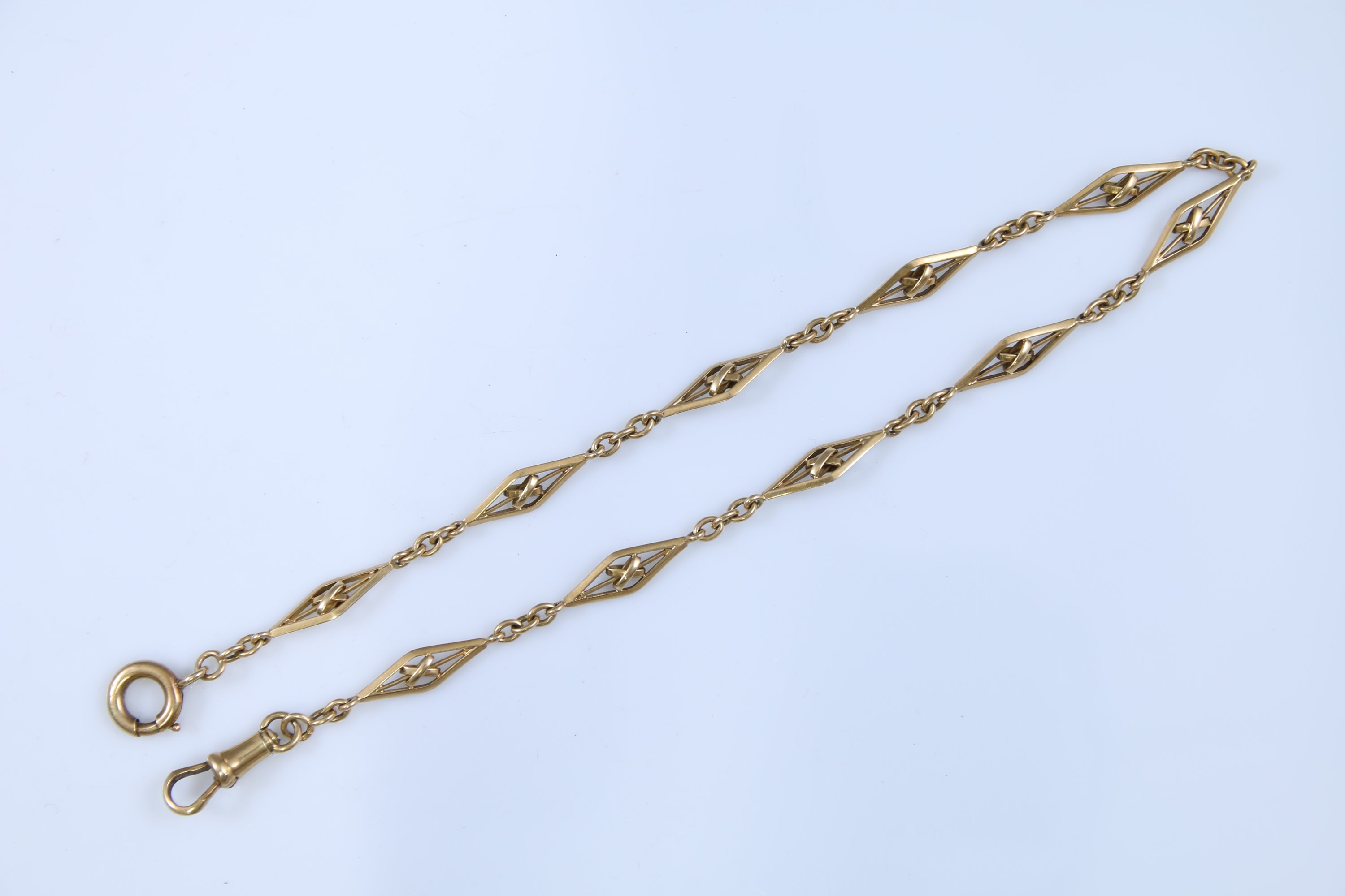 Joint : chaine de montre en métal doré. Poinçonnée "Fix". Long. 66 cm.