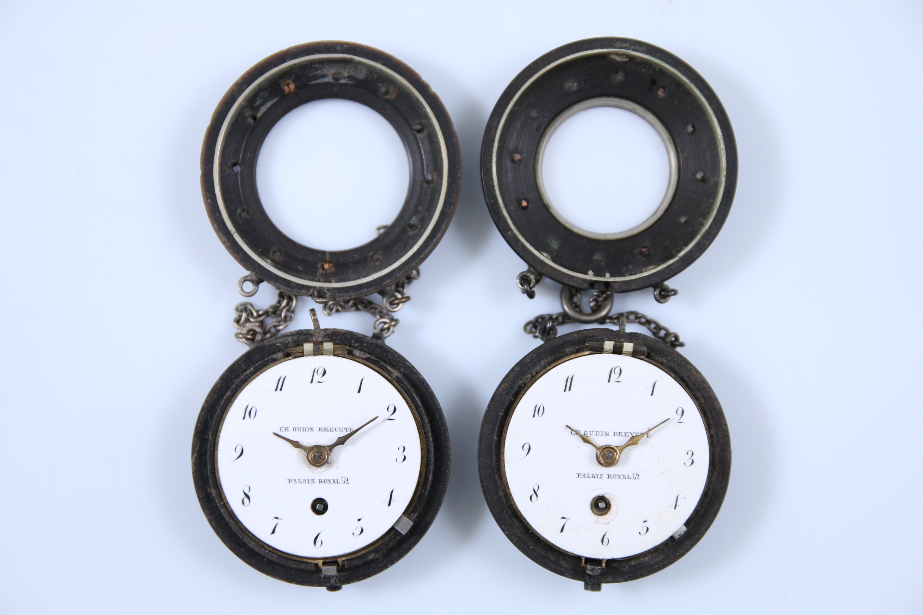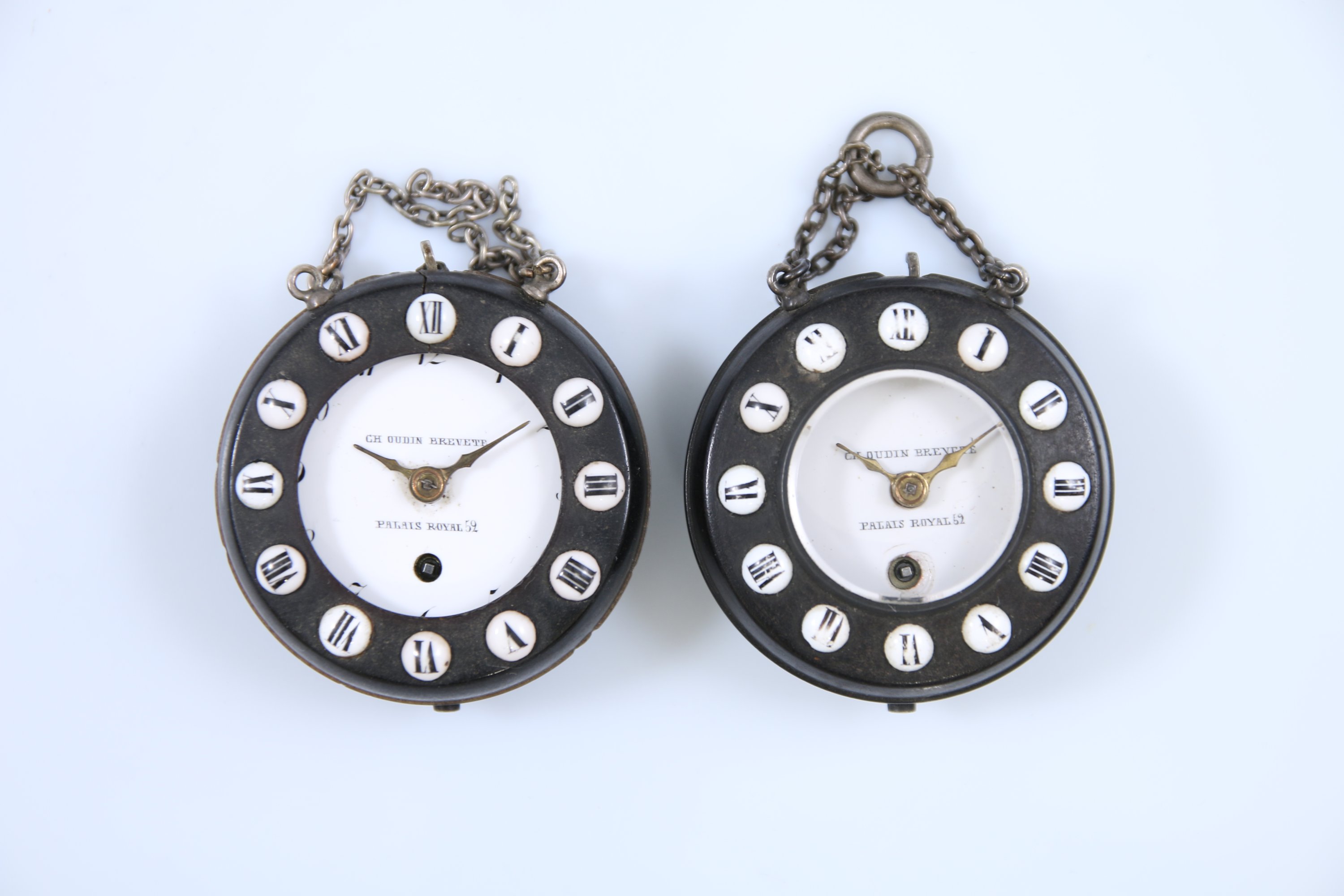 Argent et ébène. Cadrans émaillés blancs indiquant les heures en chiffres arabes et signés "Ch. Oudin, Palais Royal 52".