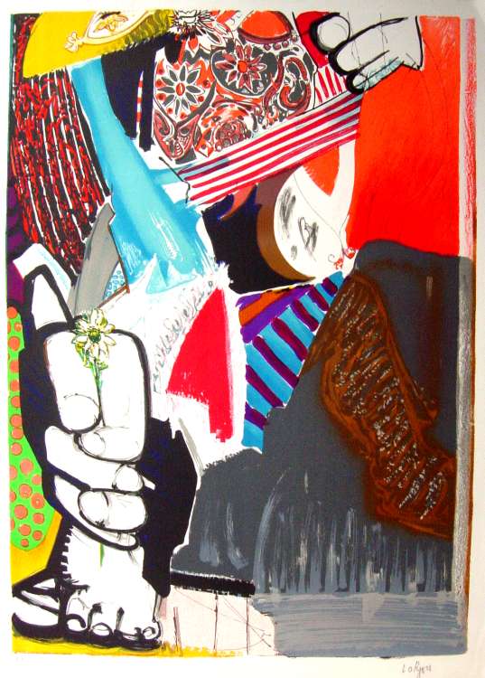 LORJOU Bernard (1908 - 1986) Composition à la marguerite. Lithographie originale en couleurs. Epreuve d'artiste, signée dans la marge. 75 x 55 cm.