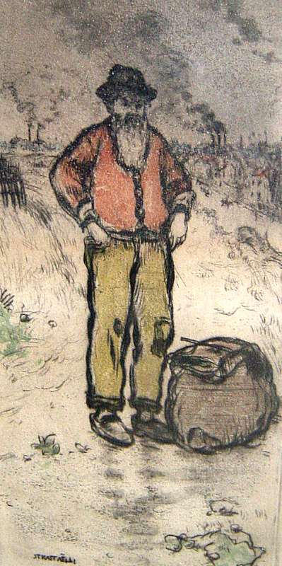 RAFFAELLI Jean-François (1850-1924). Homme barbu au chapeau. Lithographie. Signé en bas à gauche. 22 x 13,5 cm.