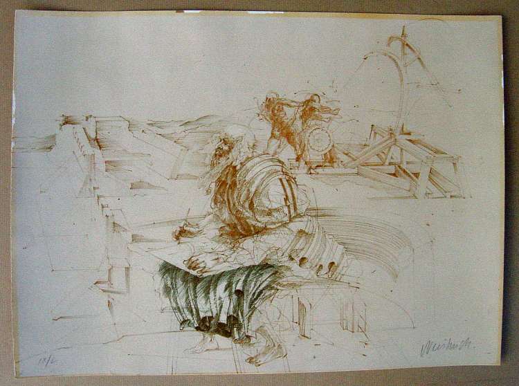 WEISBUCH Claude (né en 127) Léonard de Vinci. Lithographie originale. N° IX/L. Signée. 43 x 59 cm.