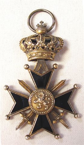 a) Belgique. Ordre de Léopold. Croix de chevalier avec épée. Argent, émail, ruban. Dans son écrin. T.B.