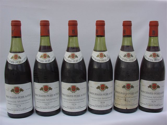 CHASSAGNE-MONTRACHET. 1979. Bouchard père & fils. 6 bouteilles (entre 3 et 4,5 cm).