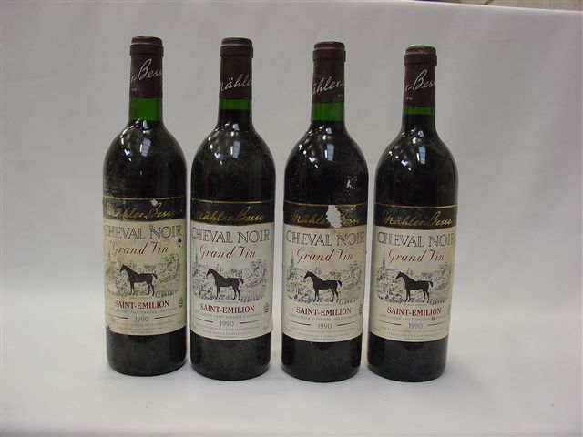 SAINT-ÉMILION. CHEVAL NOIR. 1990. 4 bouteilles. (3 bon niveau et 1 base goulot).