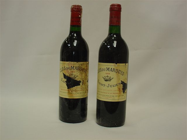 SAINT-JULIEN. CLOS DU MARQUIS. 1989. 2 bouteilles. (bon niveau, étiquettes abîmées).